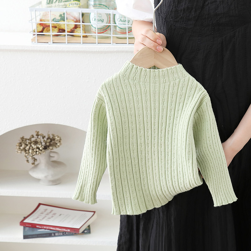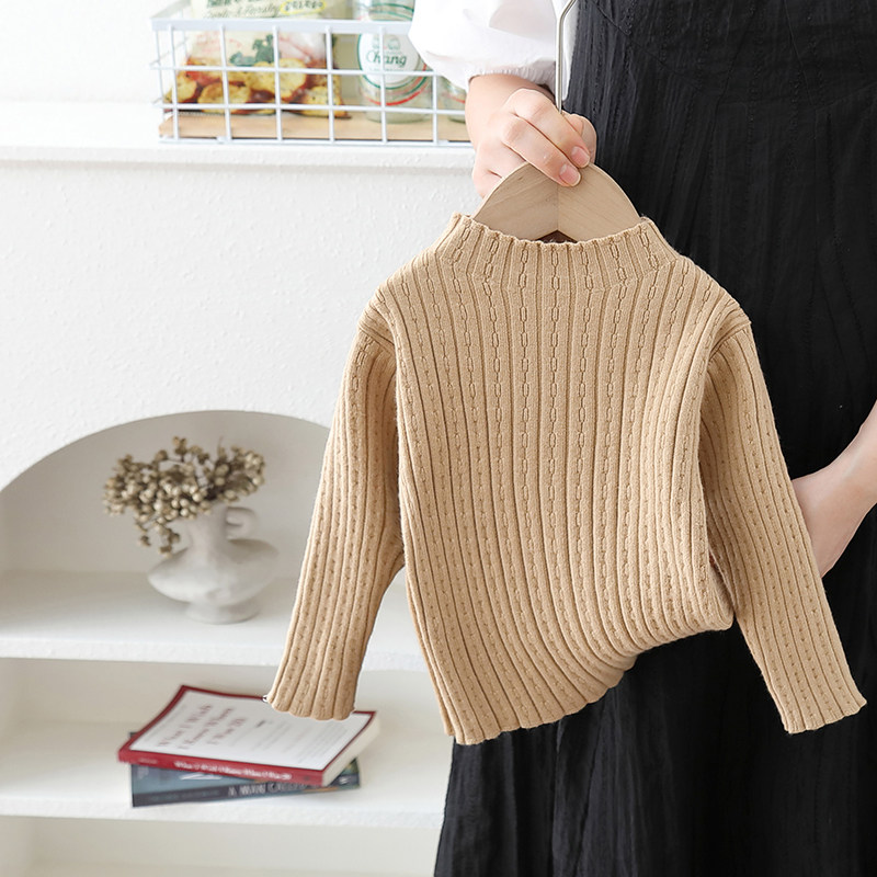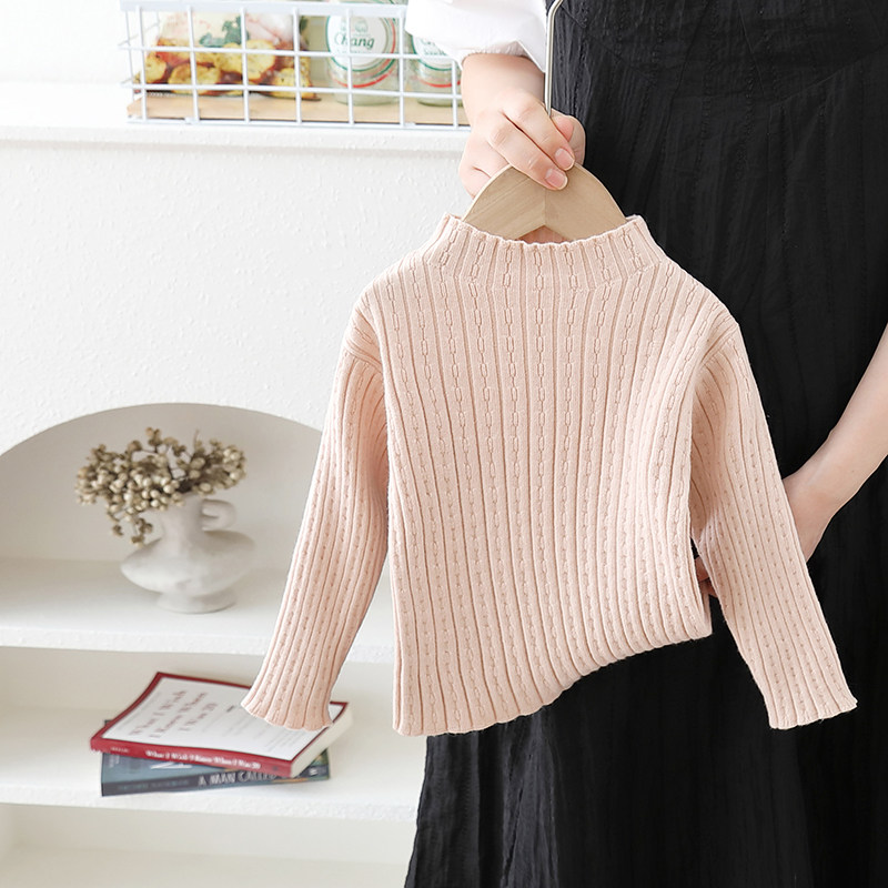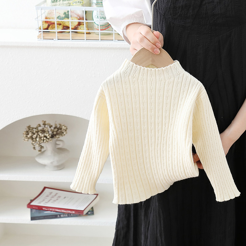 儿童秋冬薄款打底衫女宝宝韩版纯色百搭套头毛衣女童内搭毛线衣白