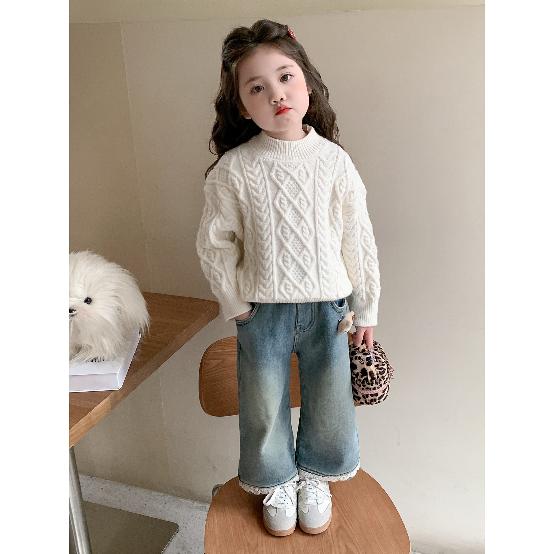 全棉女童毛衣春季2026新款洋气儿童薄款春装女宝宝针织内搭圆领