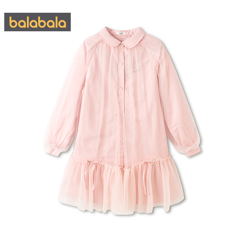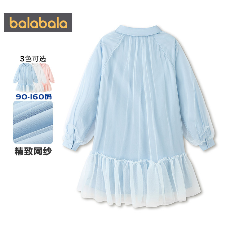 巴拉巴拉女童连衣裙中大童公主裙春头款童装宝宝网纱裙子儿童衬衫