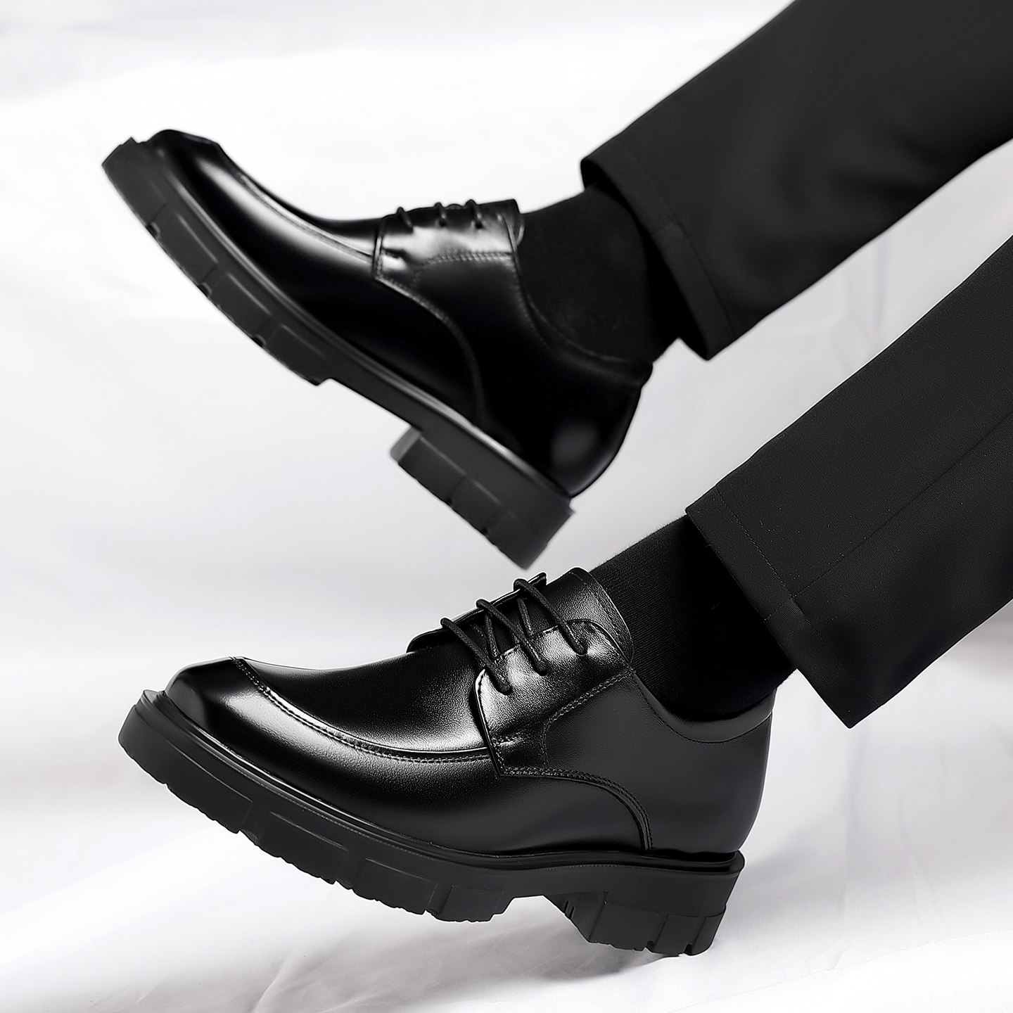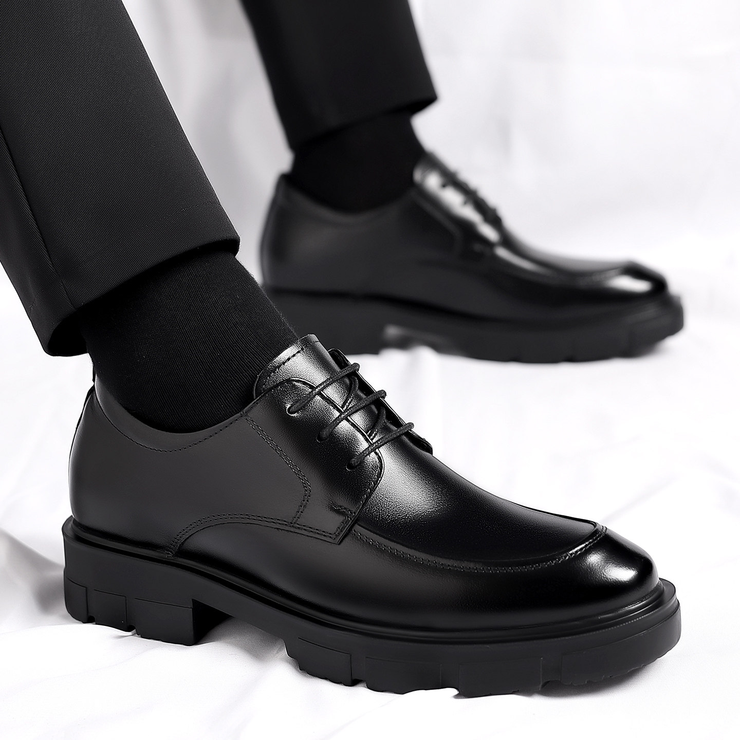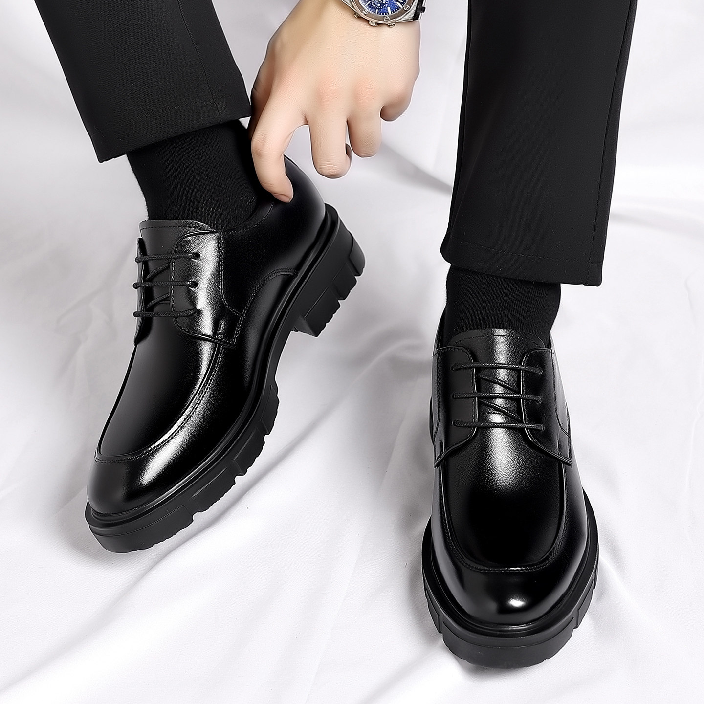 增高7/9厘米隐形内增高皮鞋商务正装男鞋真皮透气圆头青年结婚鞋