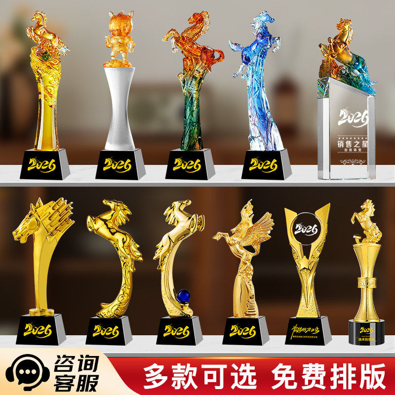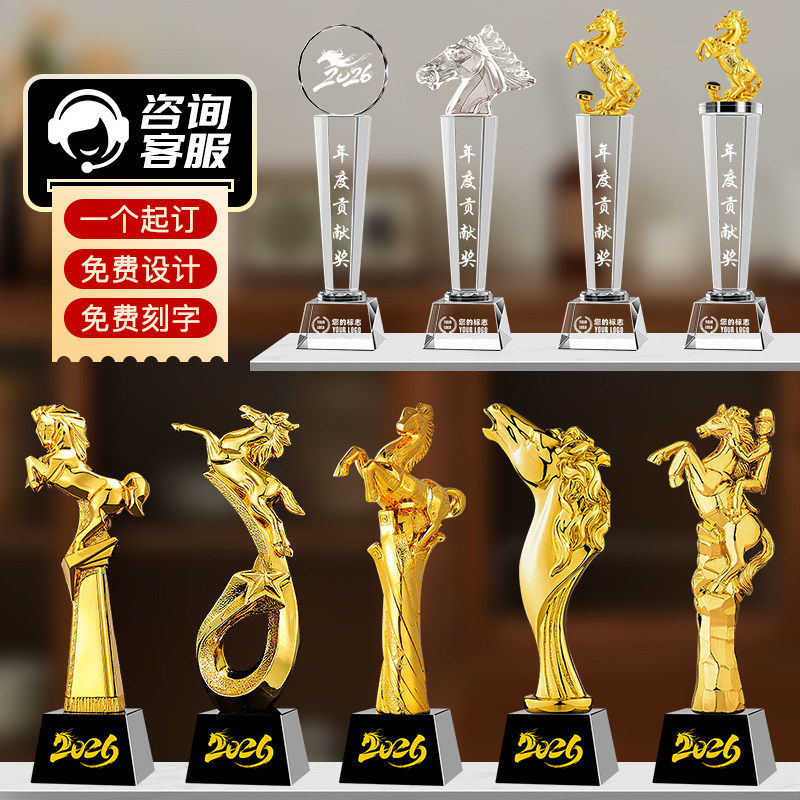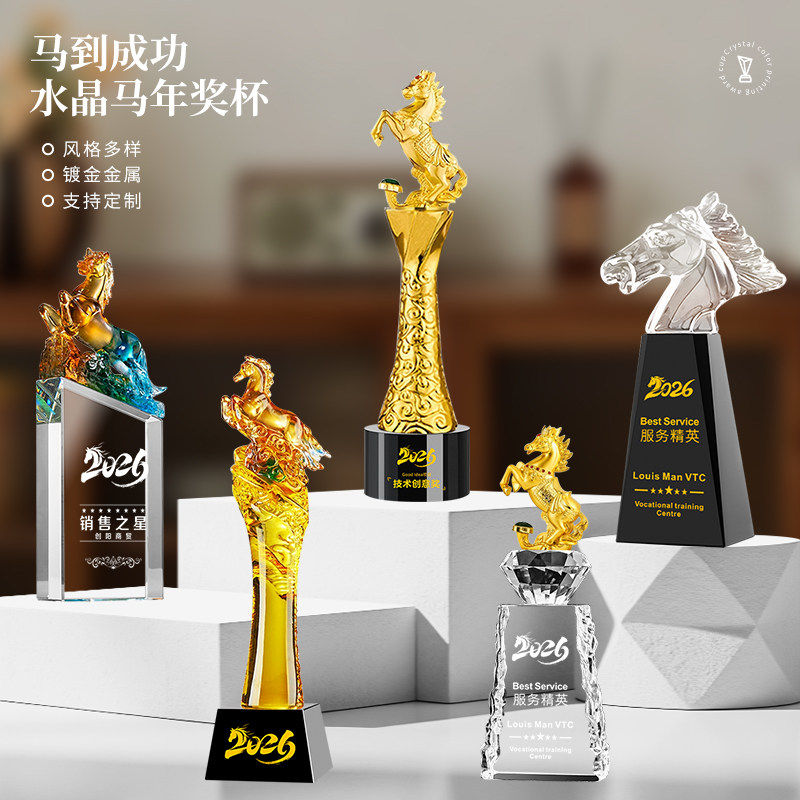 2026马年水晶金属奖杯定制马到成功优秀员工冠军团队马术比赛颁奖