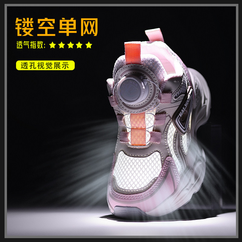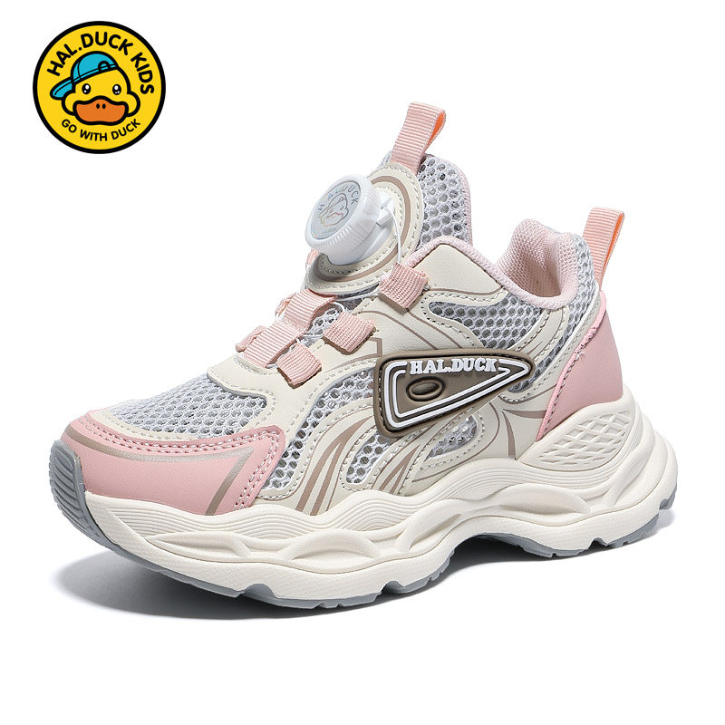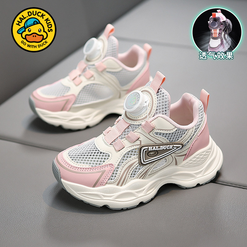小黄鸭童鞋儿童单网鞋2026夏季新款网面透气网鞋女童运动纽扣鞋子