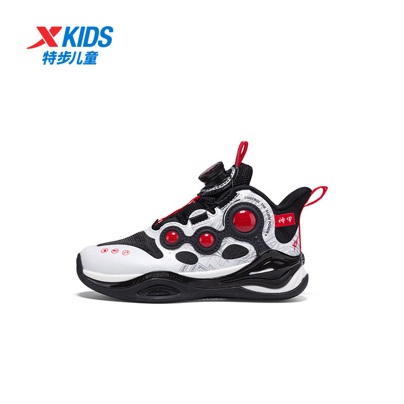 特步童鞋儿童运动鞋春秋季新款男童缓震耐磨幼小童旋转纽扣篮球鞋
