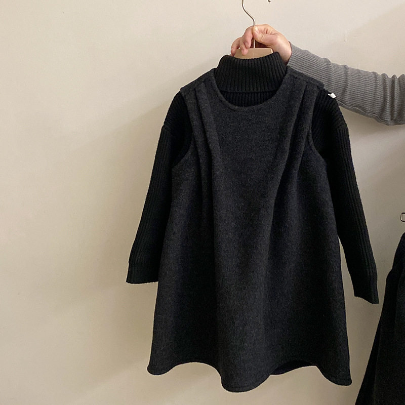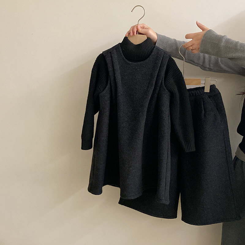 女童秋冬装2026新款加厚毛呢背心裙百搭加绒休闲裤洋气潮流三件套