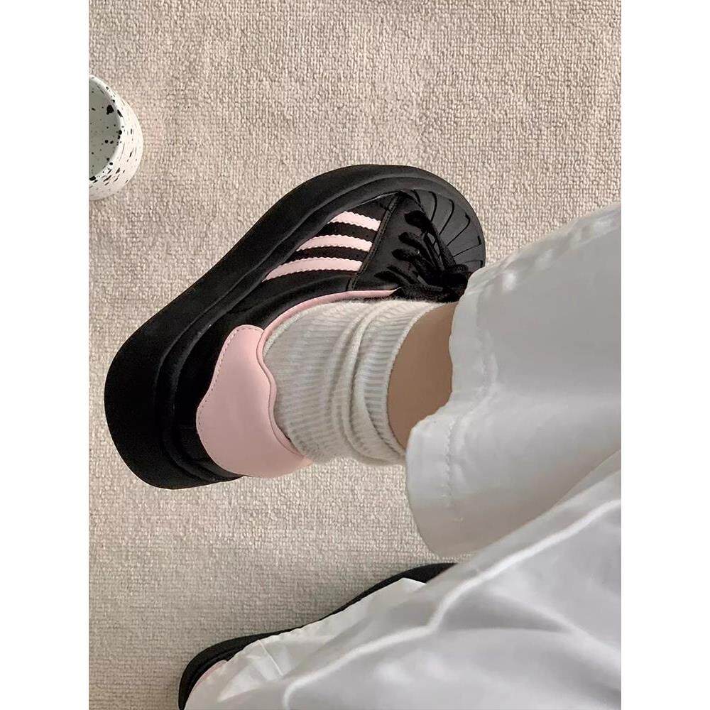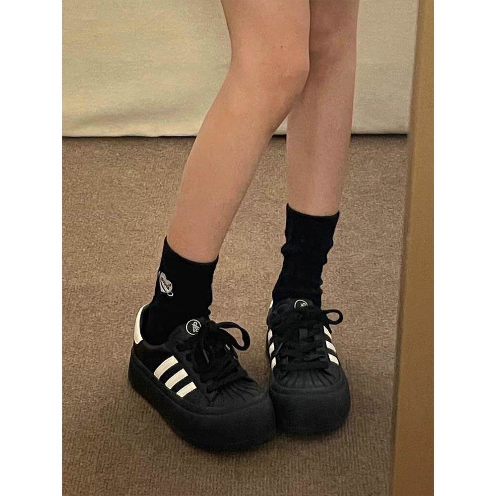 黑色厚底内增高德训鞋女款2025新款春秋季百搭休闲运动贝壳头板鞋