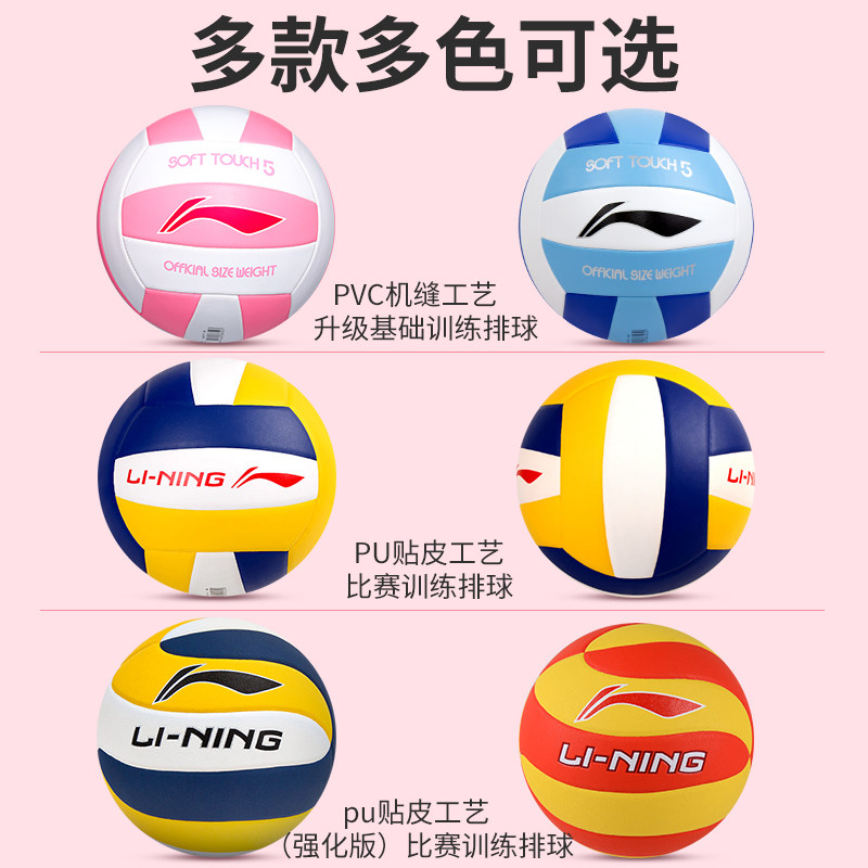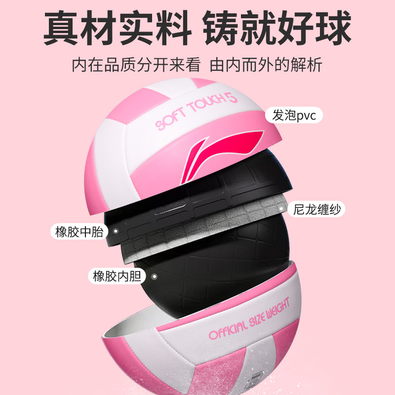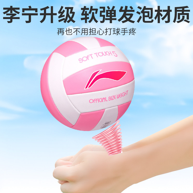 李宁排球中考学生专用小学初中生女比赛软排5号儿童粉气排球正品