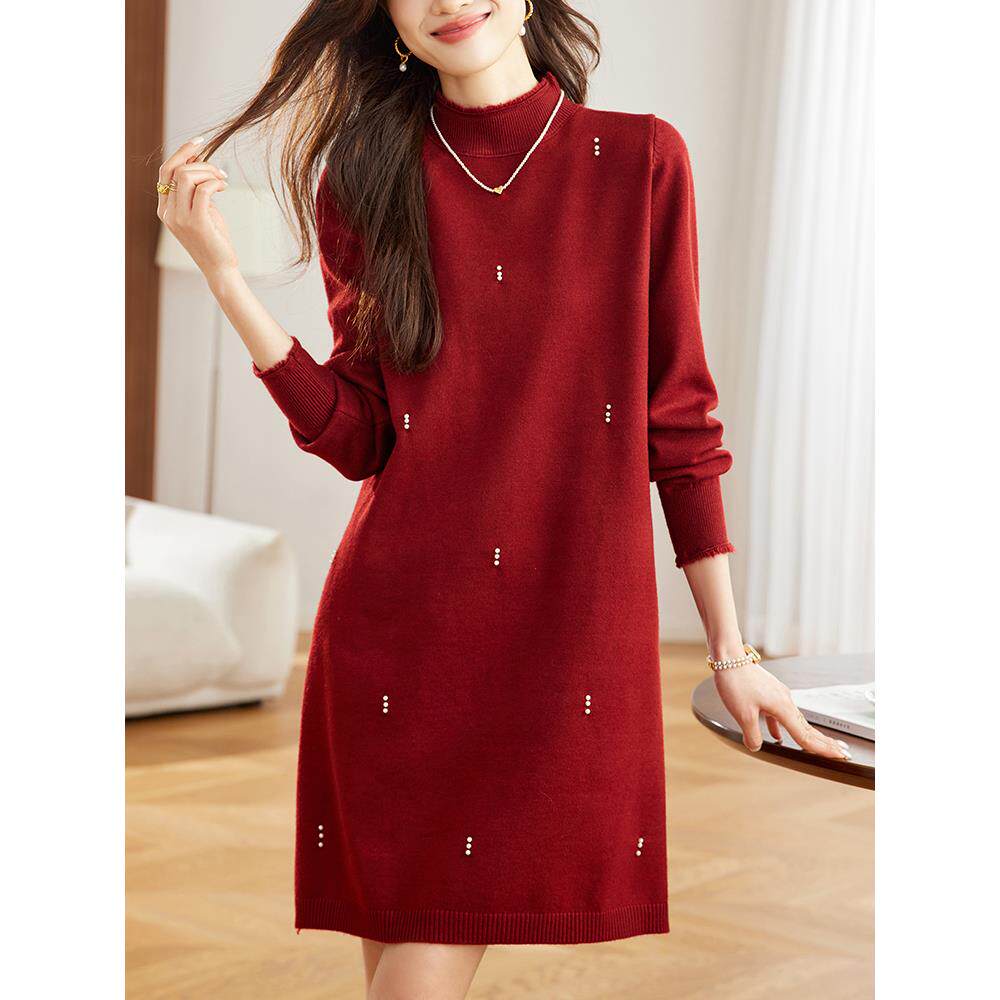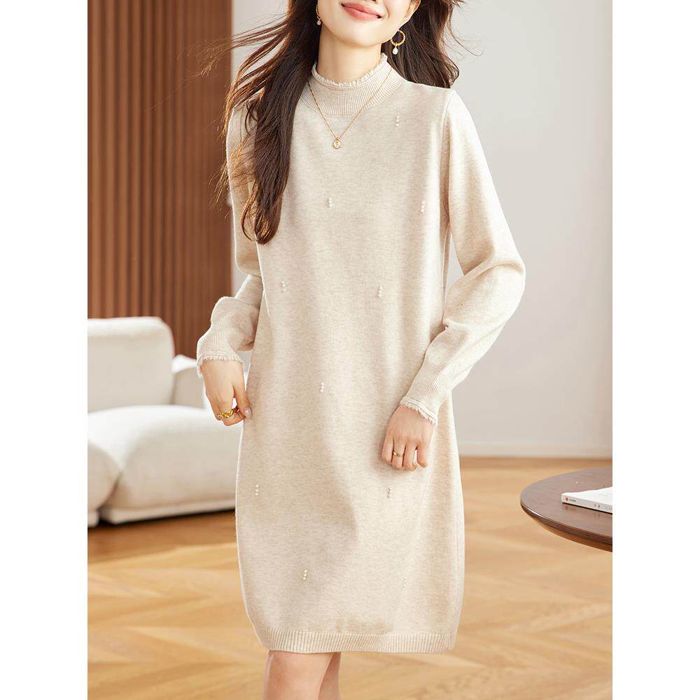 洋气大码秋冬中长款针织连衣裙胖妈妈200斤宽松遮肚子打底毛衣裙