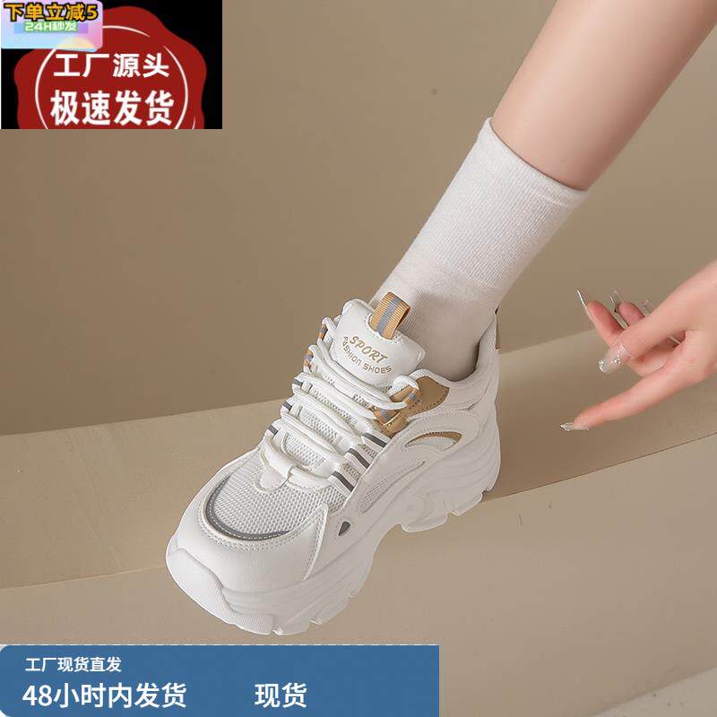 高级感小个子厚底老爹鞋女鞋2024春秋新款莆田运动鞋内增高旅游鞋