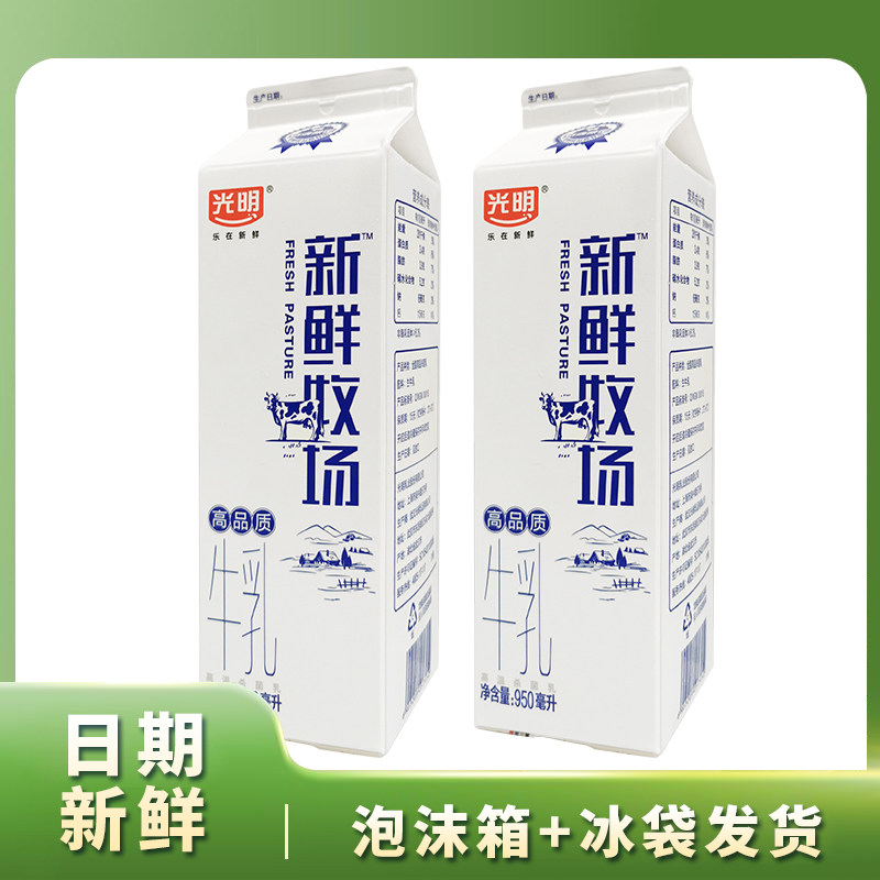 光明新鲜牧场950ml杀菌乳低温纯牛奶家庭儿童营养早餐
