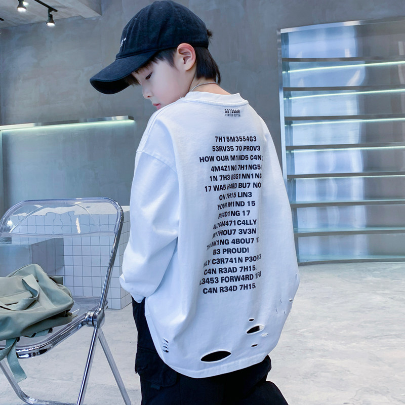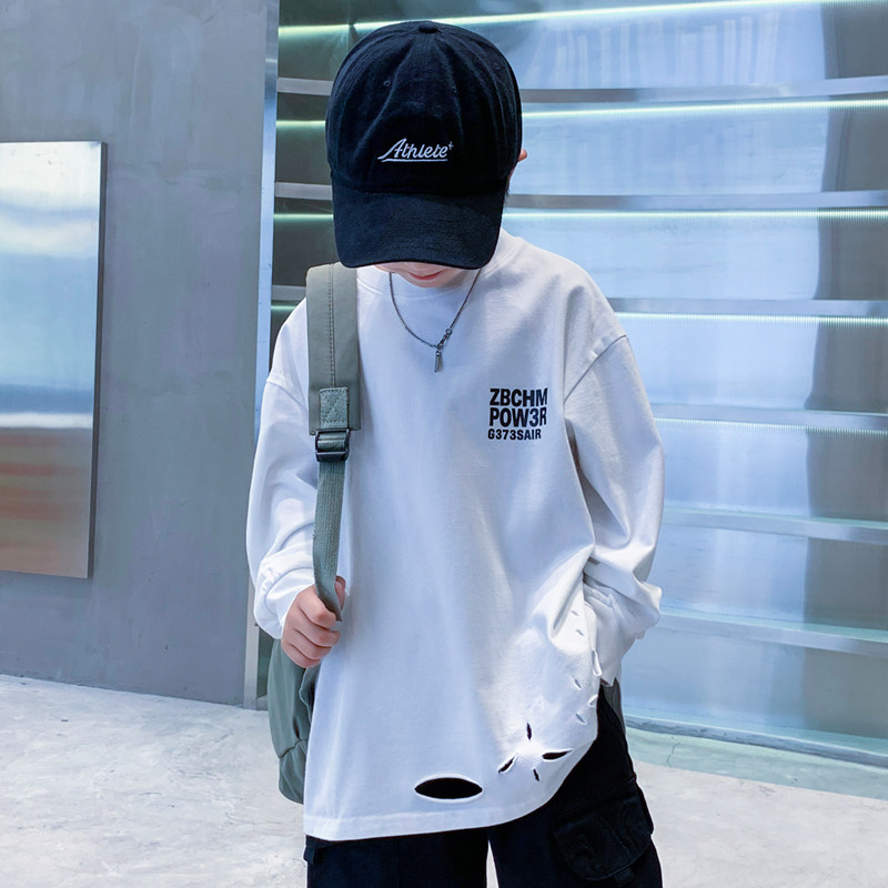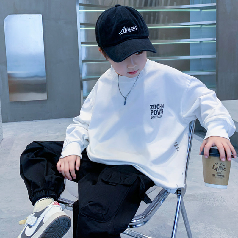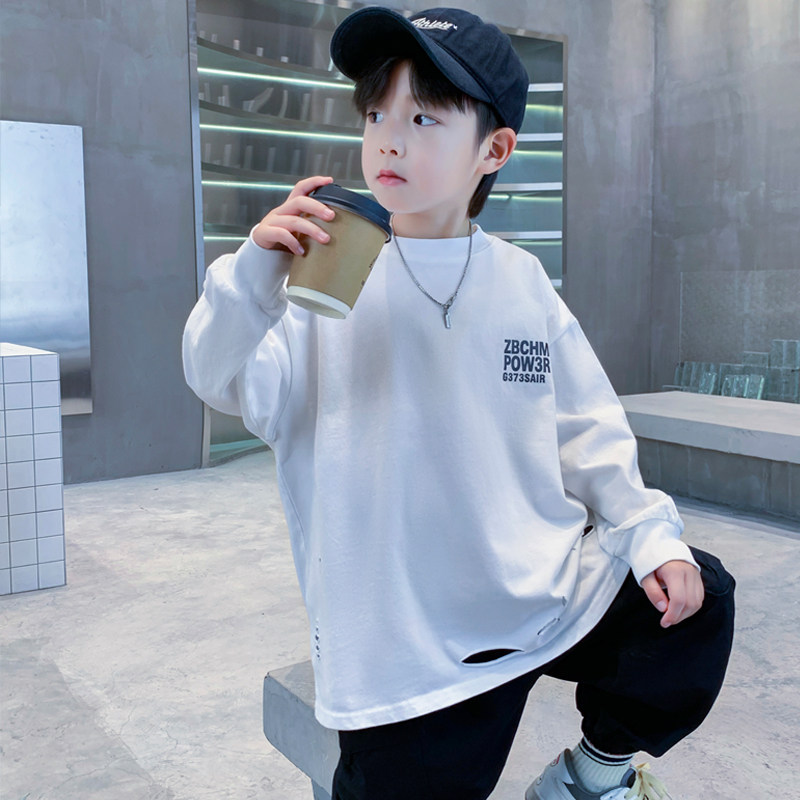 男童长袖t恤内搭打底衫中大儿童体恤白色2024春秋季新款春装薄款