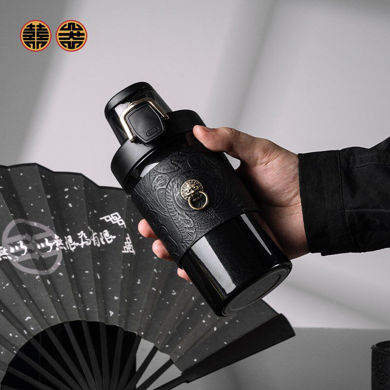 喜器保温杯大容量男款316不锈钢带杯套便携水壶简约国潮吸管水杯