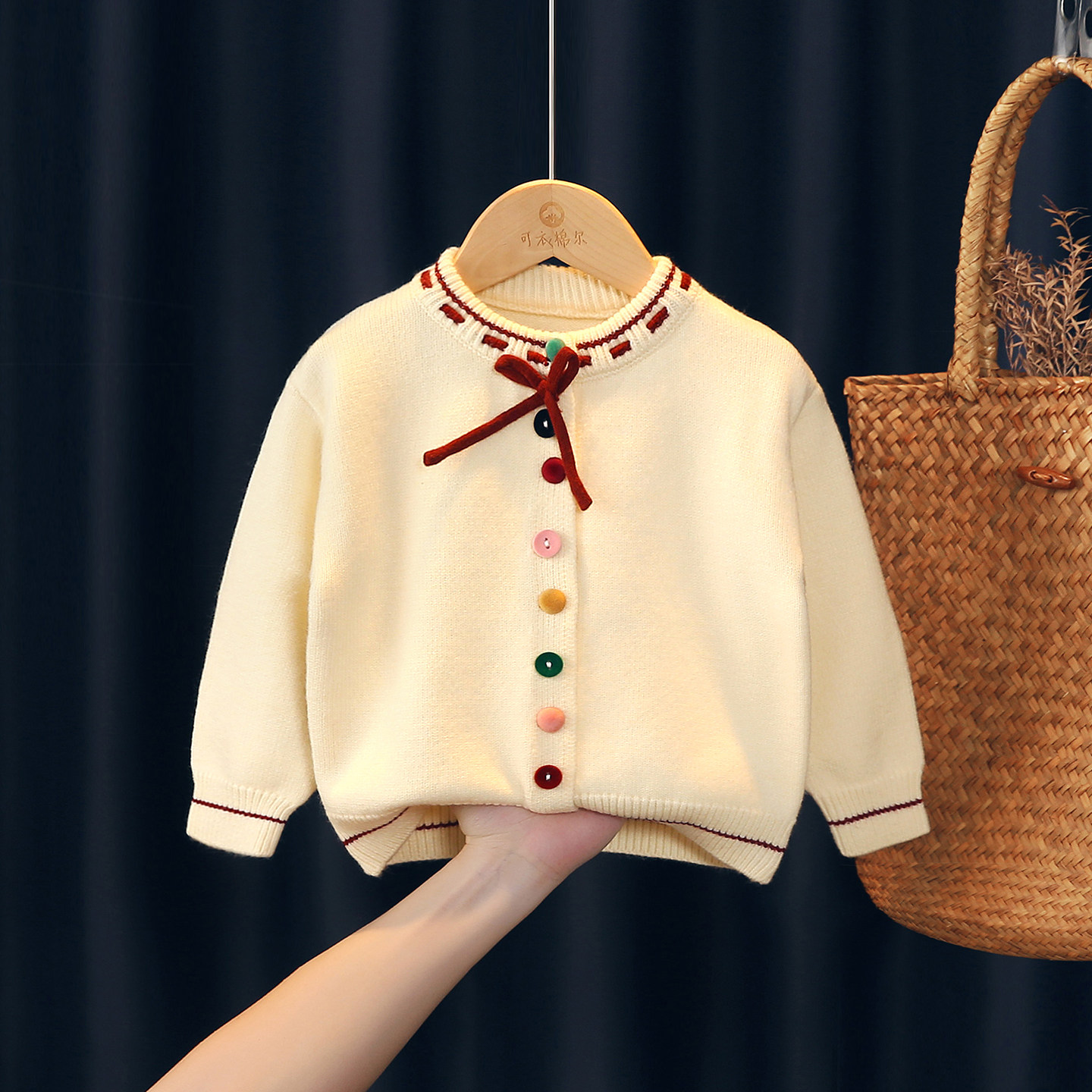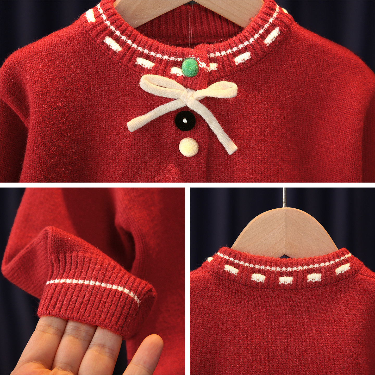 311线报网描述:女宝宝针织外套红色洋气好看女小童毛衣开衫