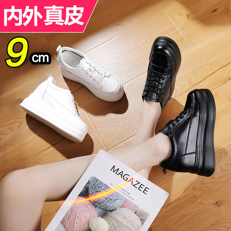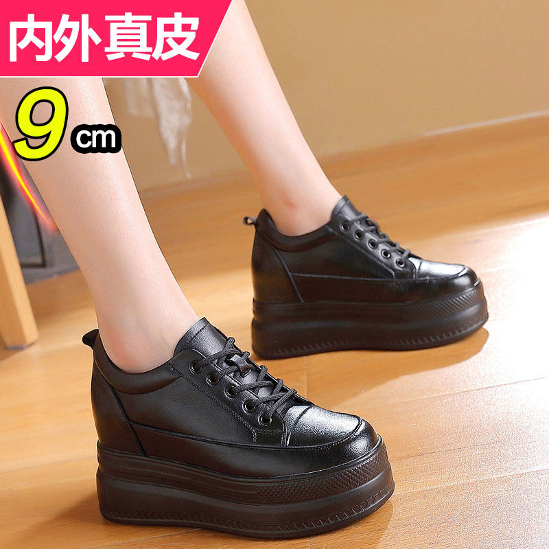纯皮小个子内增高女鞋8cm鞋子女冬真皮春秋季厚底松糕小白鞋爆款