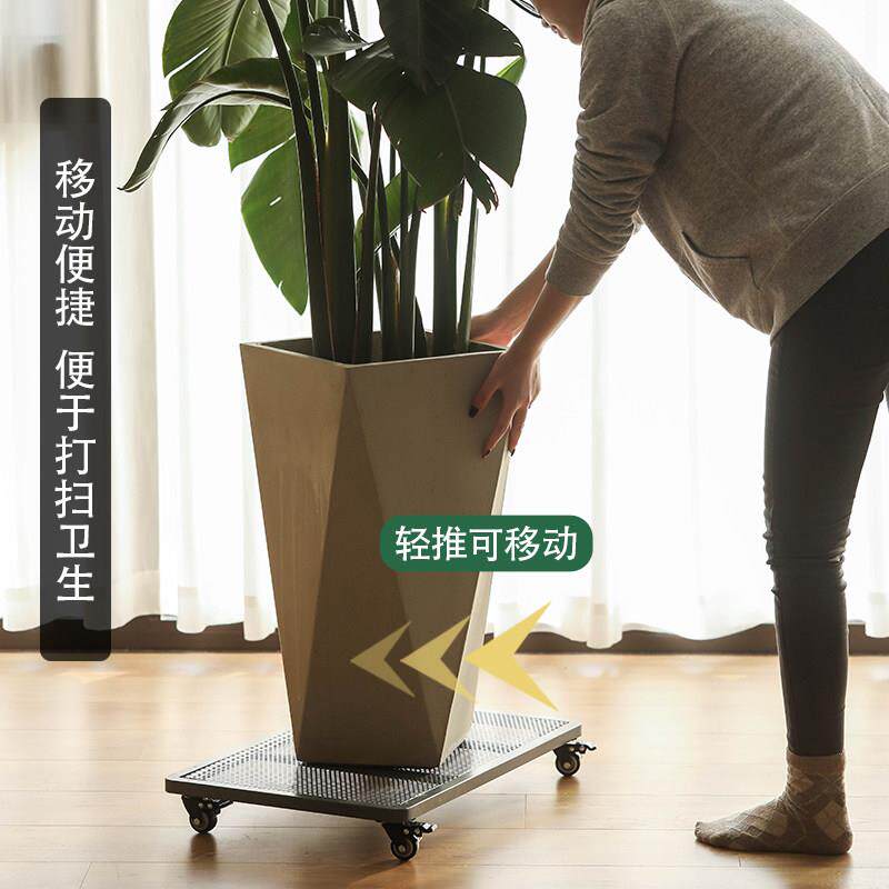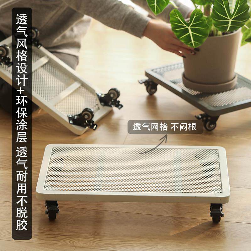 长方形移动花盆托 托盘铁艺带轮滚轮万向轮透气加厚大号四方绿植