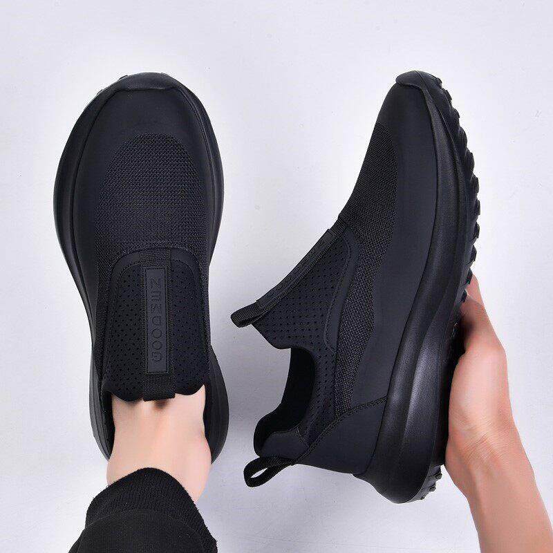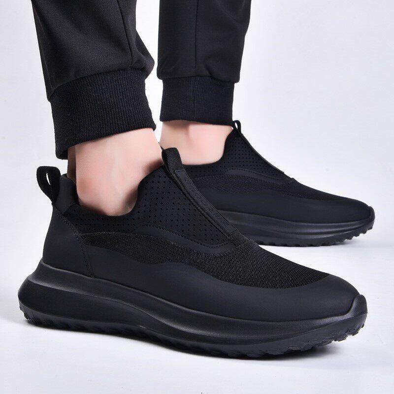 高檔男鞋透氣防臭網面鞋運動鞋男款跑步鞋一腳蹬軟底增高休閒潮鞋