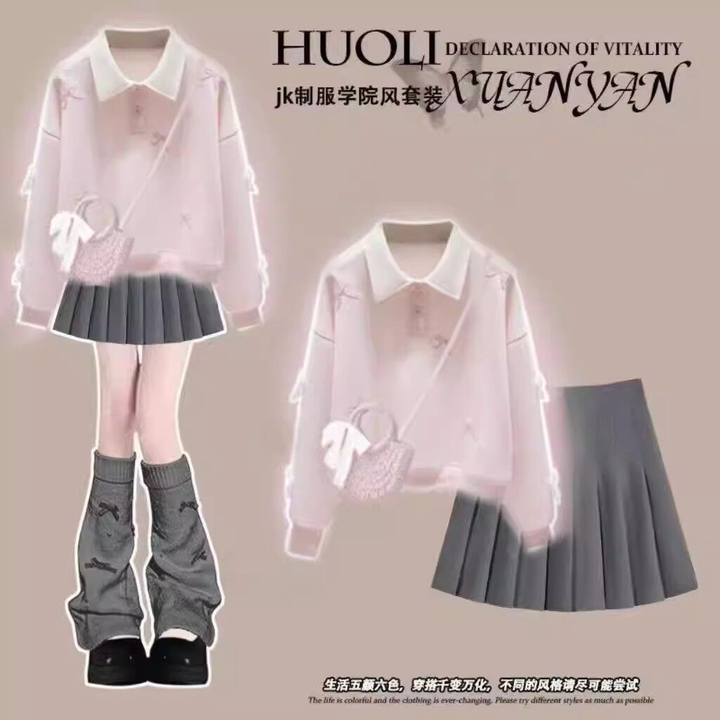 女童卫衣套装2026春季新款儿童装学院风小女孩JK百褶裙一整套裙子