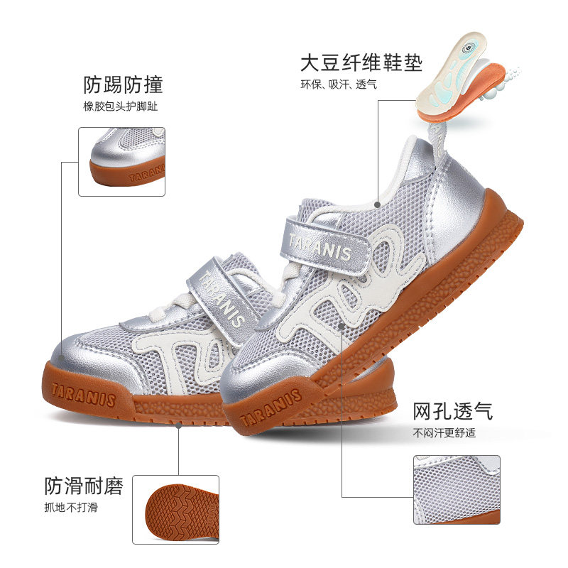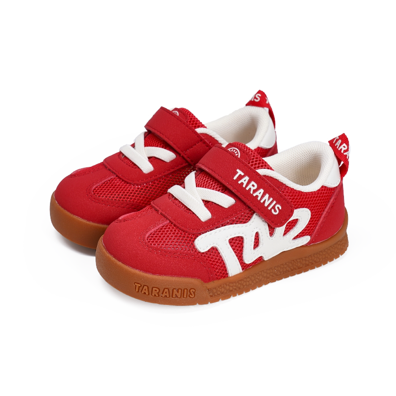 泰兰尼斯春秋婴童学步鞋软底透气网面字母防滑红色男女童面包鞋子