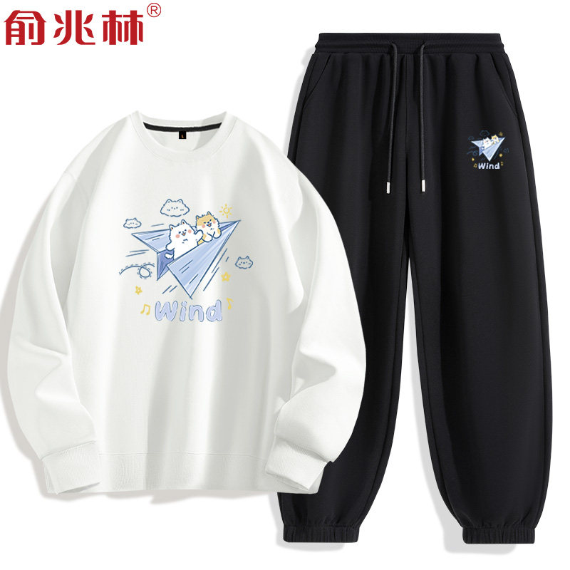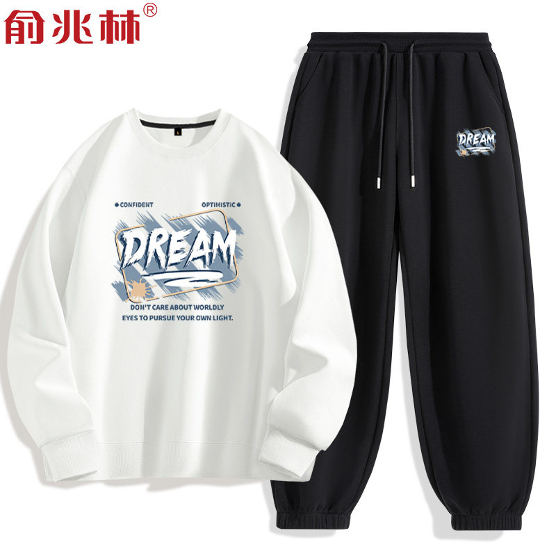 白色卫衣男休闲运动套装青少年高中生初中生男生秋季一整套搭配潮