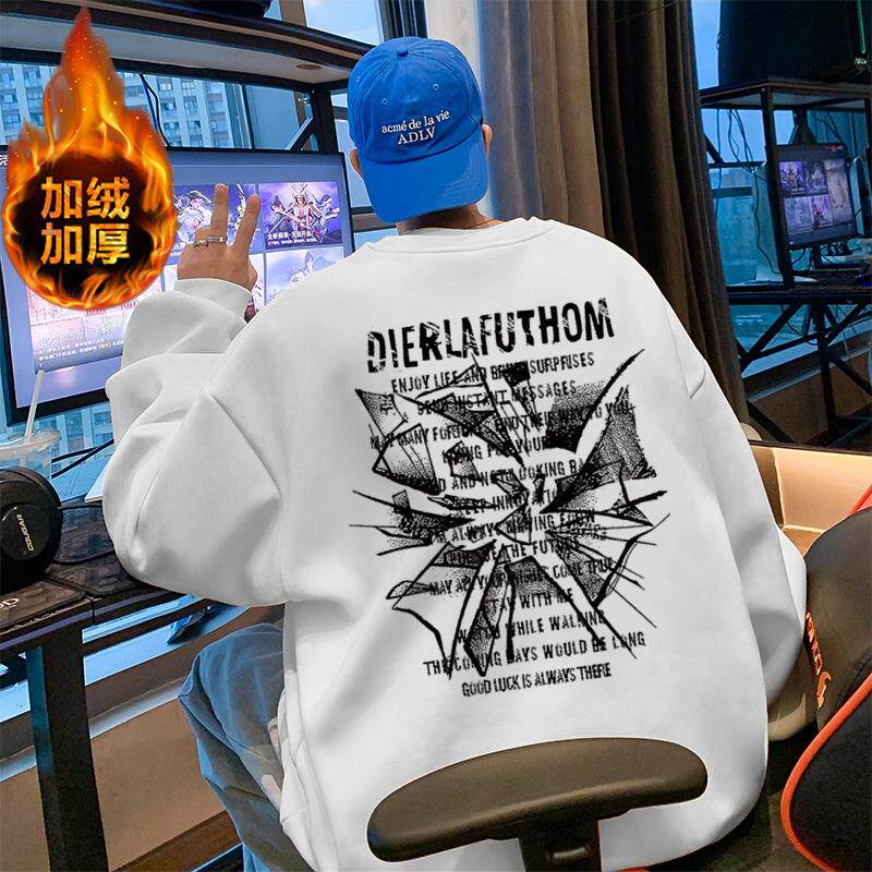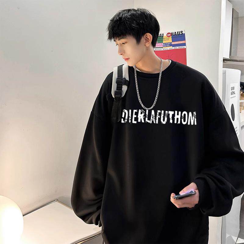春秋季男生纯棉无帽卫衣外套青少年初中生白色内搭上衣服宽松大码