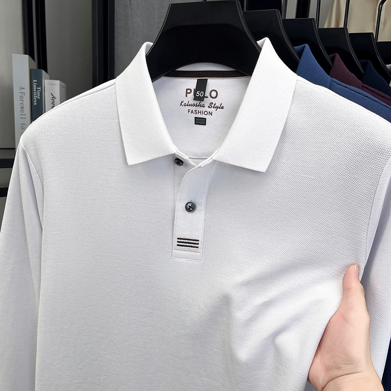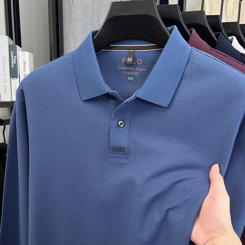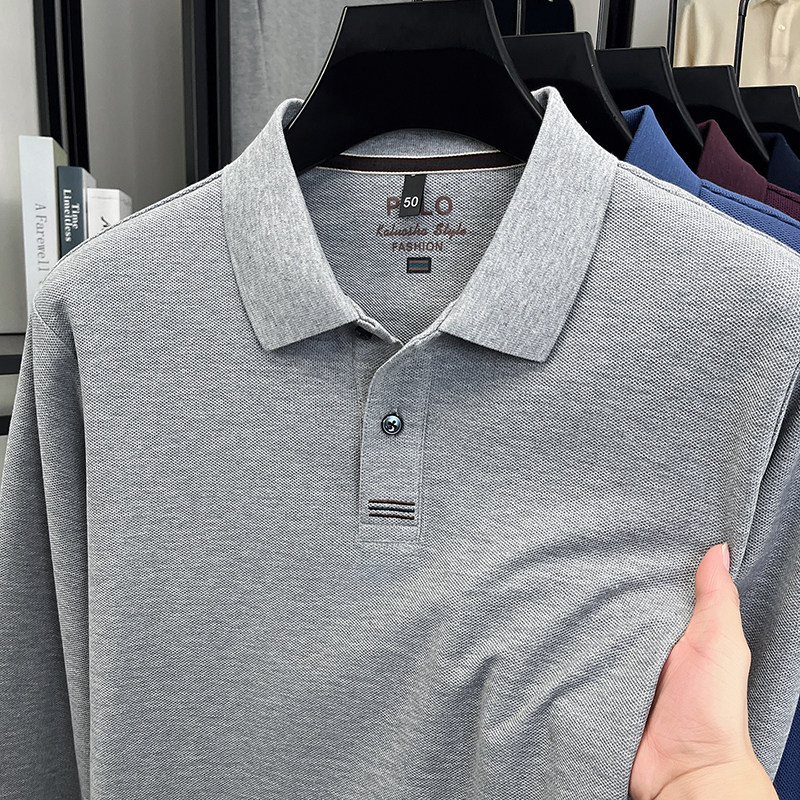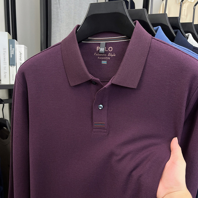 100%纯棉男士2025春秋季POLO衫商务休闲翻领长袖透气T恤男款宽松