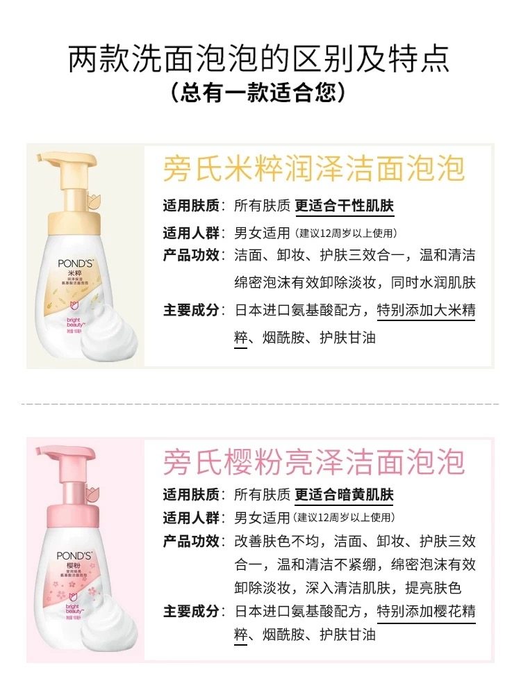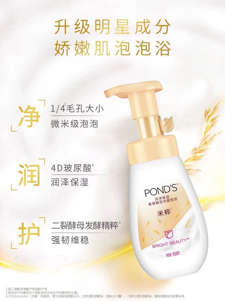 旁氏米粹润泽保湿氨基酸洁面泡泡160ml泡沫洗面奶深层清洁学生女