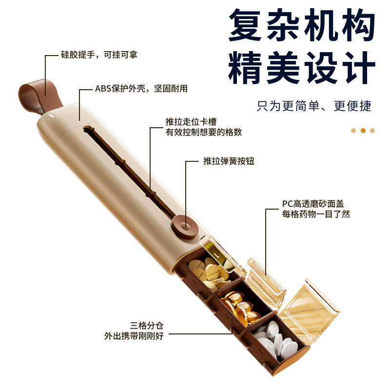 药盒便携式透明三格带盖抽拉药盒大容量分格小药盒户外随身小药盒
