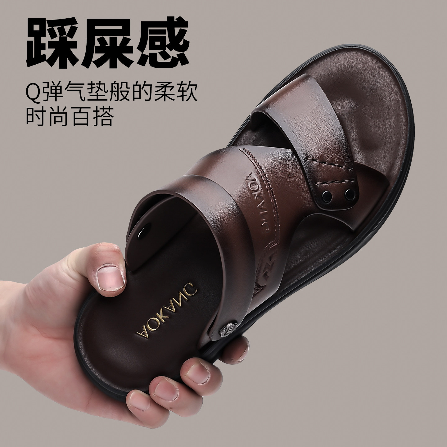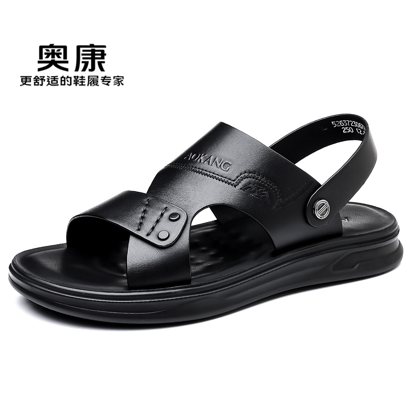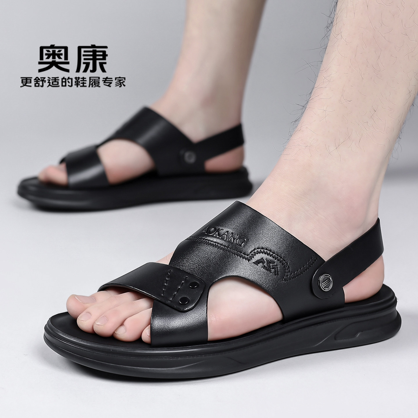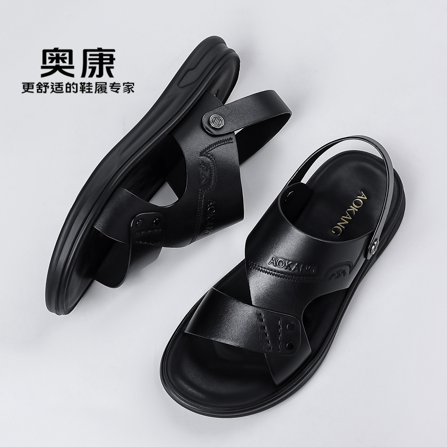 奥康凉鞋男款2026夏季新款真皮休闲凉鞋男透气软底舒适户外海滩鞋