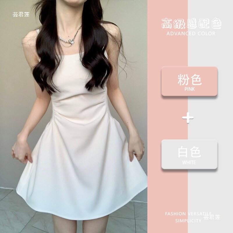 纯欲甜辣白色a字吊带裙夏季收腰显瘦气质粉色短款连衣裙女小个子