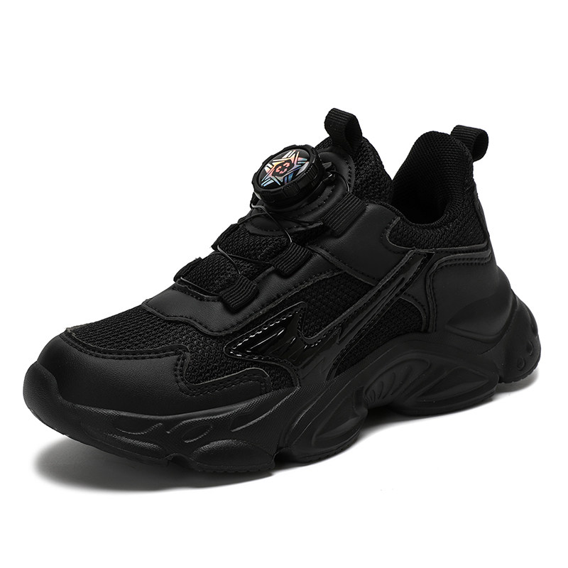 夏天透气儿童网面运动鞋男童鞋子全黑色大码40单网镂空跑步小白鞋