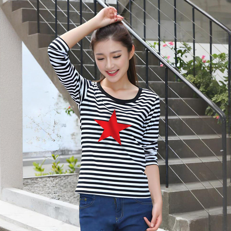 海魂衫女款青少年春秋季纯棉长袖横黑白条纹水手服打底衫班服t恤