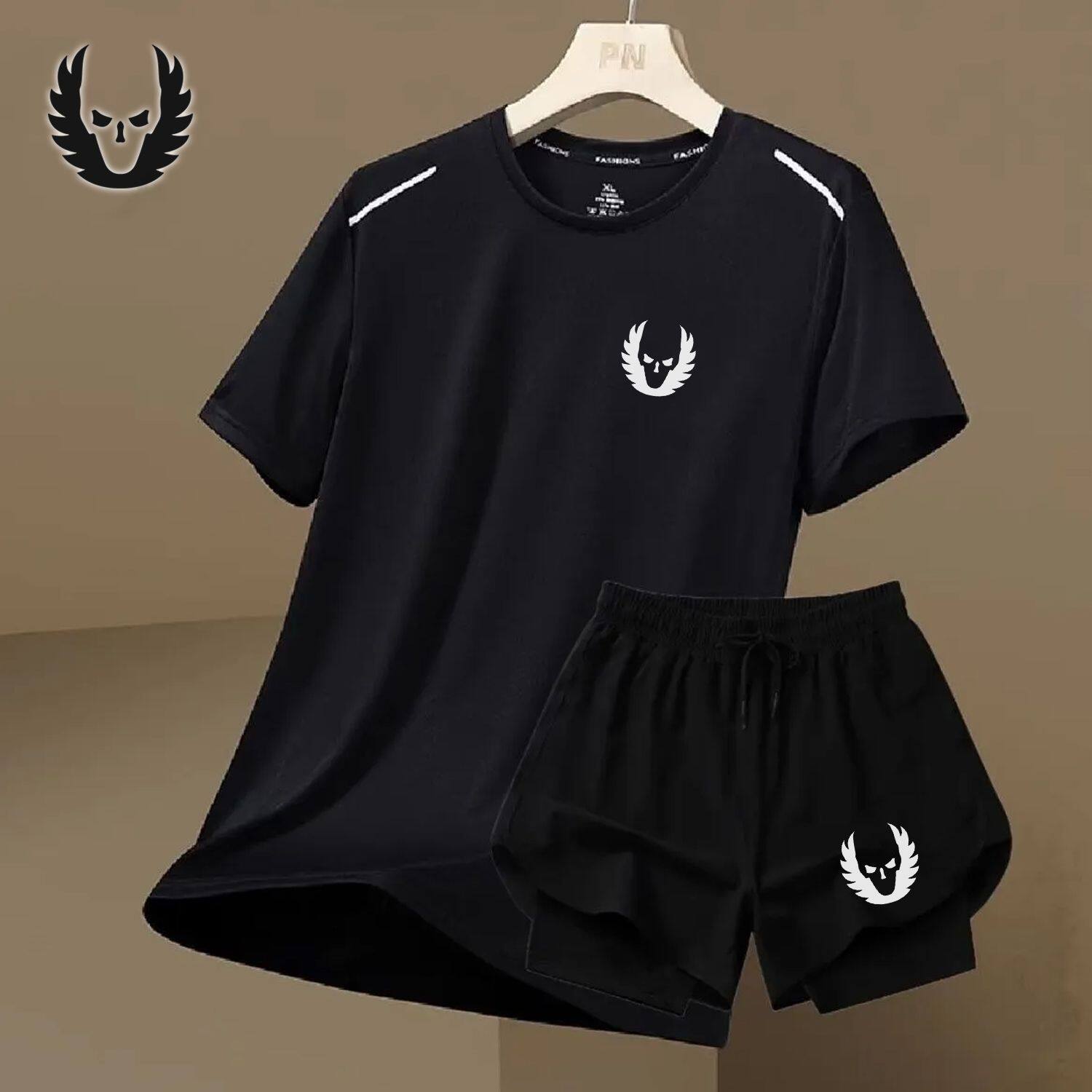 俄勒冈速干短袖跑步体育生t恤圆领透气跑步套装田径训练四分裤