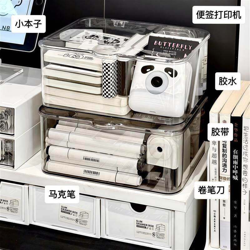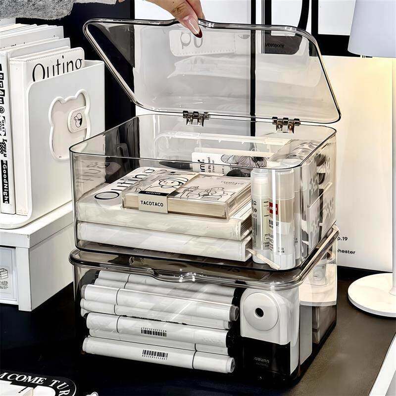 日本透明收纳箱全透翻盖式桌面收纳盒亚克力防尘整理盒卧室宿舍办