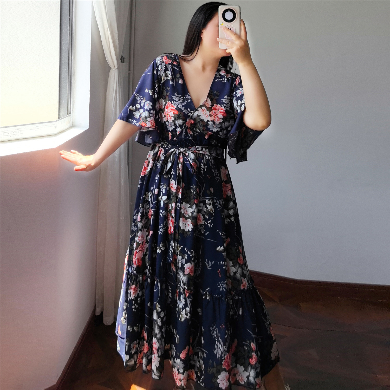 微胖大码女装连衣裙夏季新款2025胖妹mm200斤遮肚显瘦时尚碎花裙