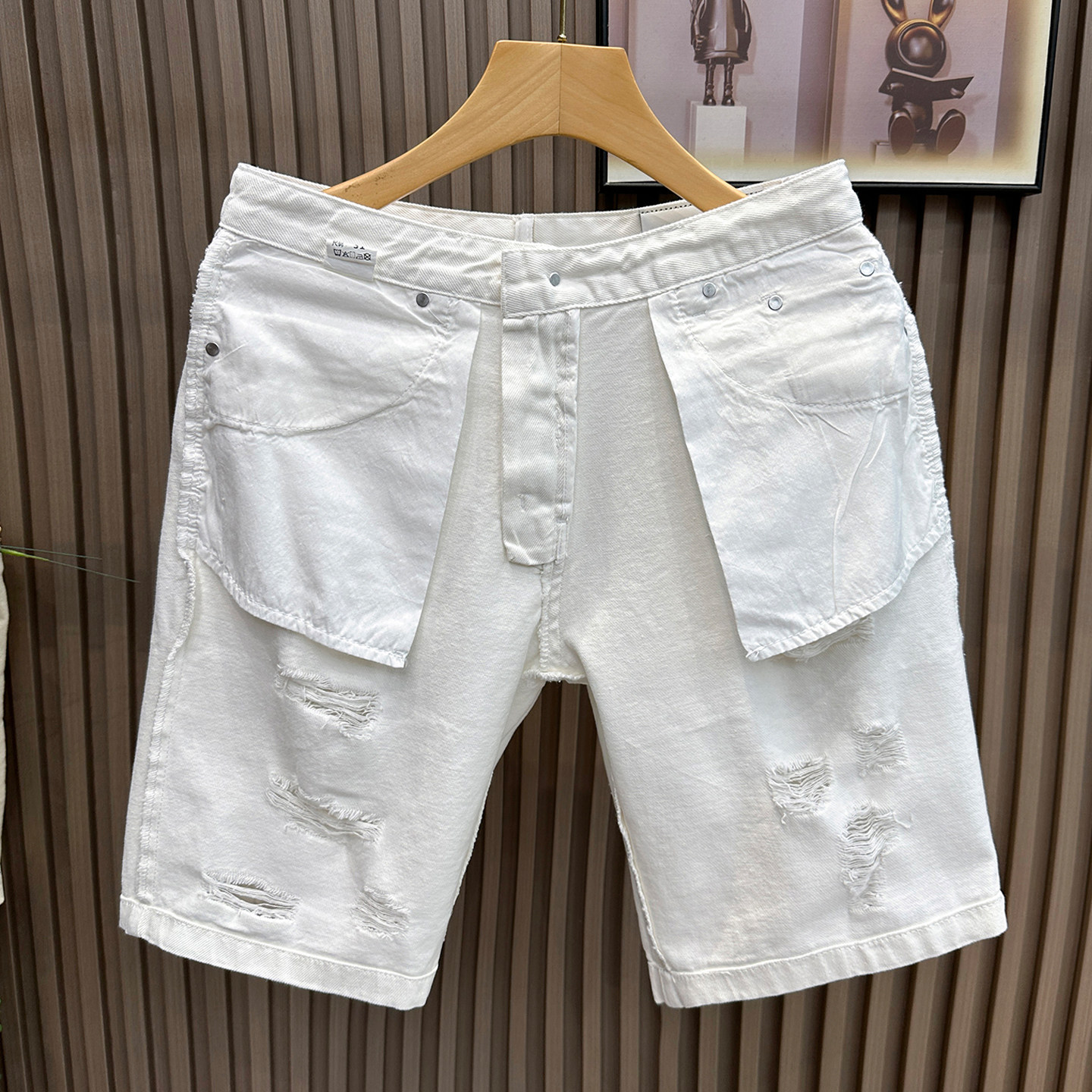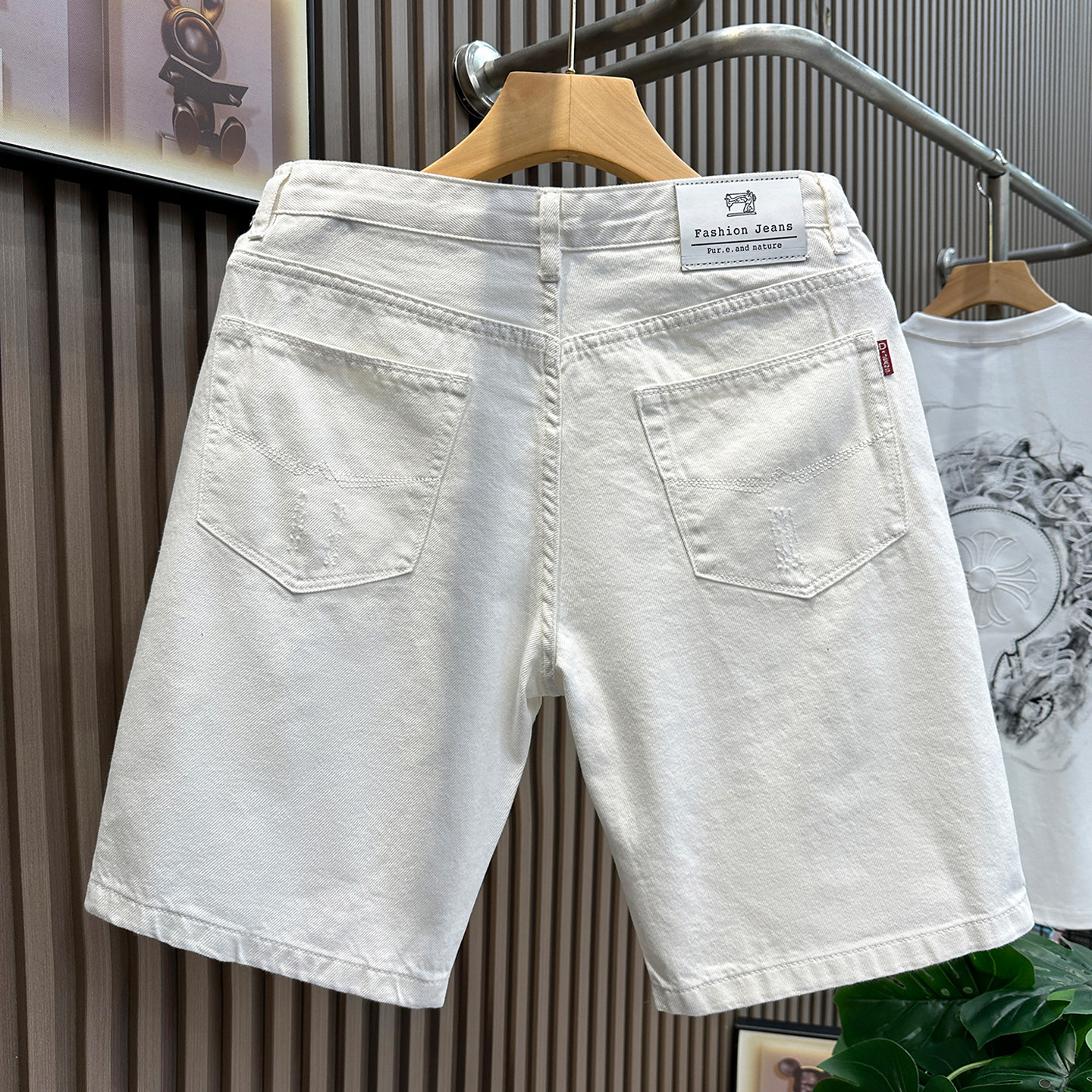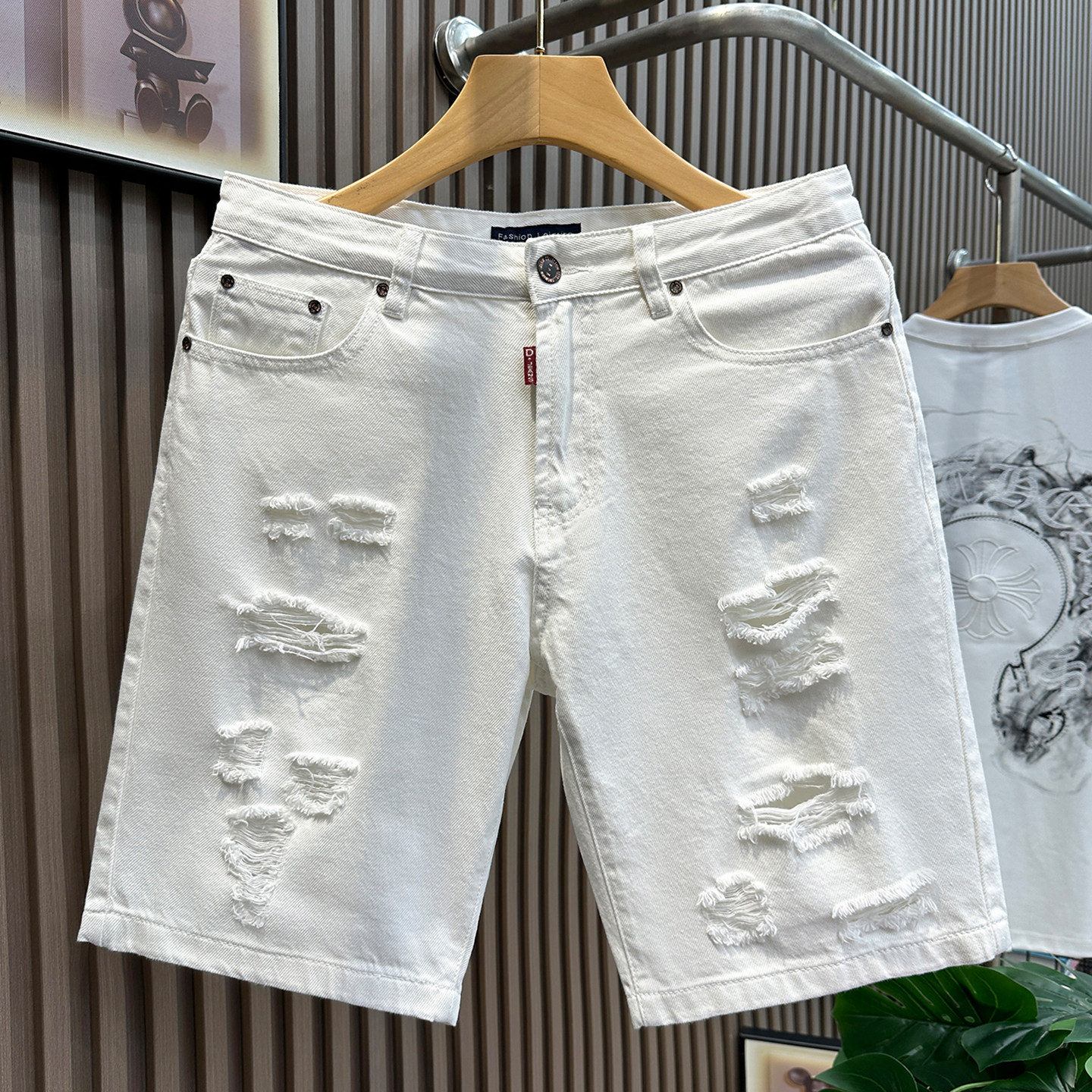 流行白色破洞牛仔短裤男款潮牌休闲五分裤男士百搭帅气夏季半截裤