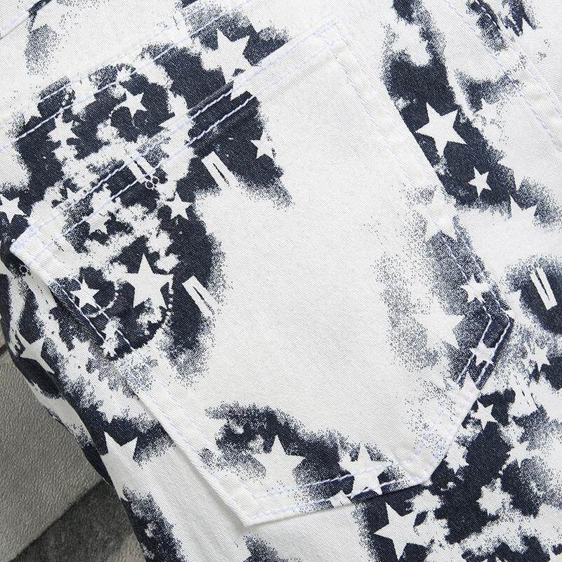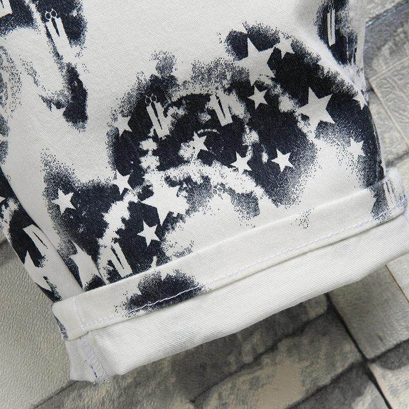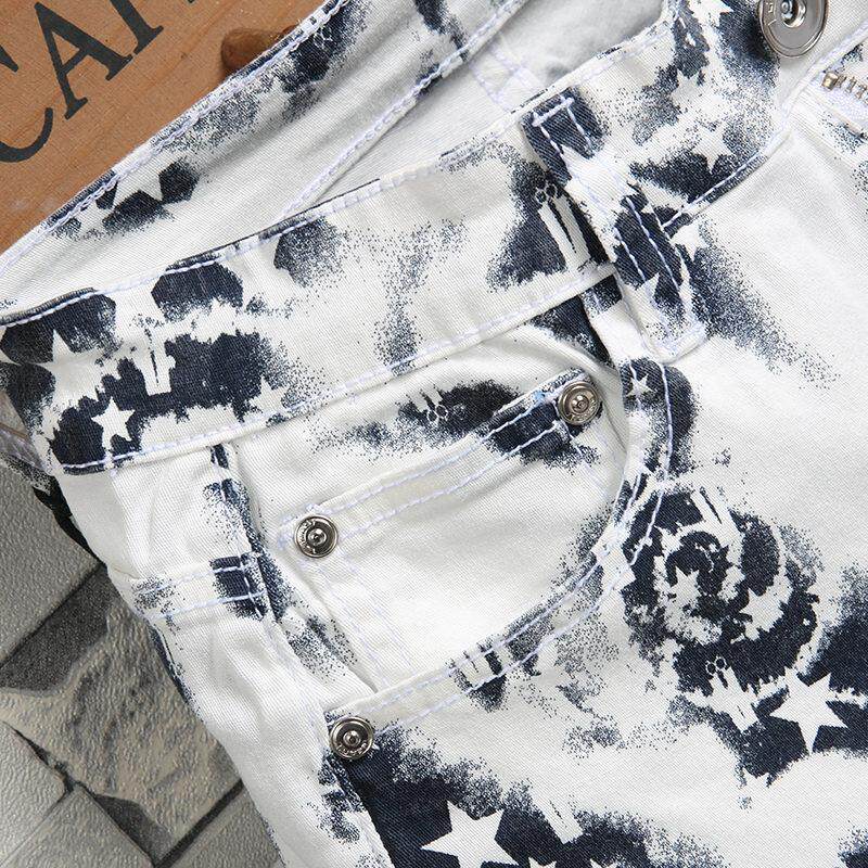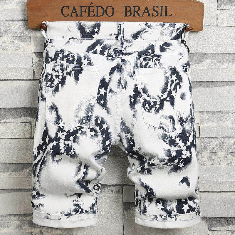 2024新款白色迷彩裤子男士牛仔短裤男夏季薄款五分七分休闲裤男款