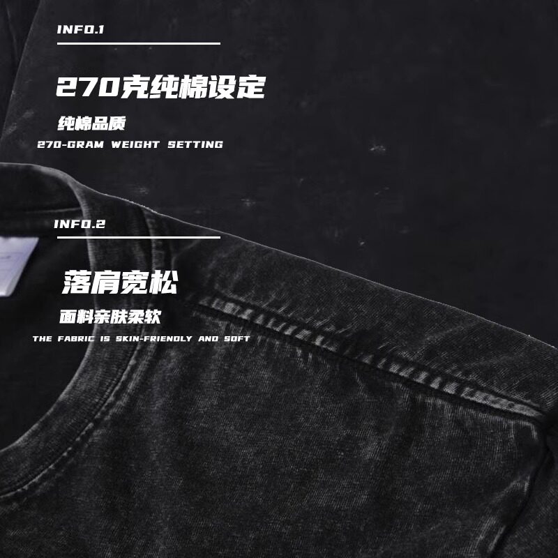 270g洗水做旧重磅纯棉t恤工作服私人定制美式潮牌diy印字logo刺绣