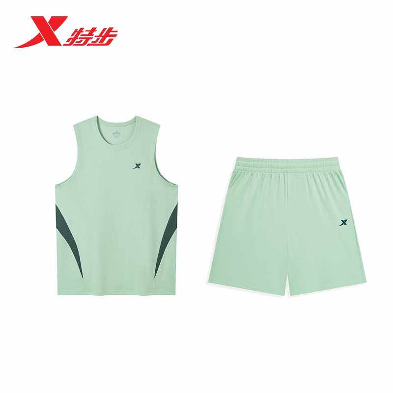 特步篮球运动套装男2025夏季新款透气短裤背心篮球服975229680167
