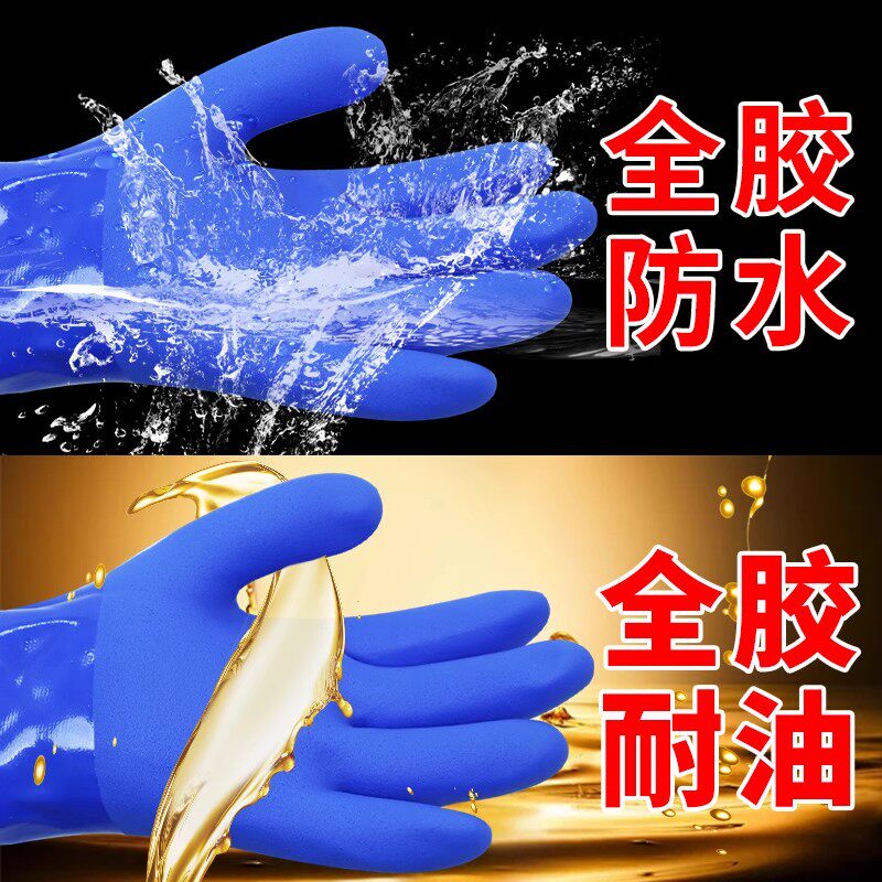 耐油手套劳保耐磨工作男浸胶工业耐酸碱加厚防滑防水汽修修车专用