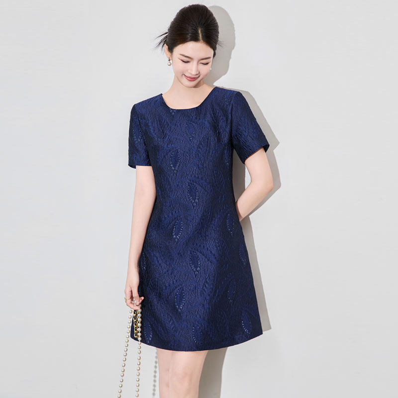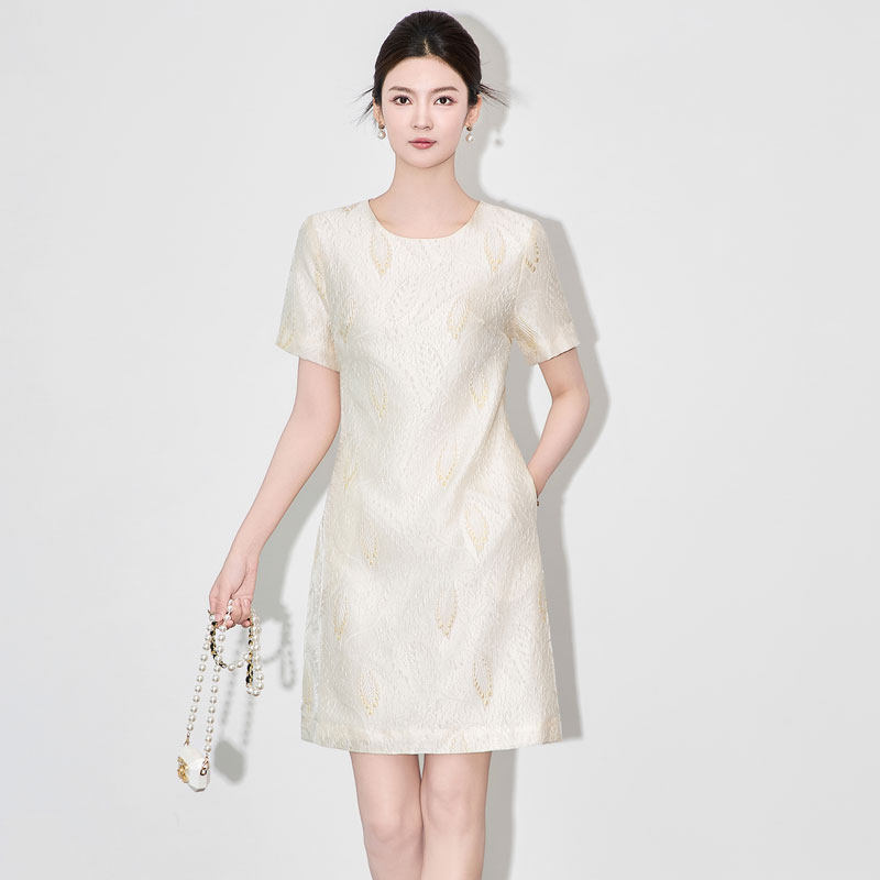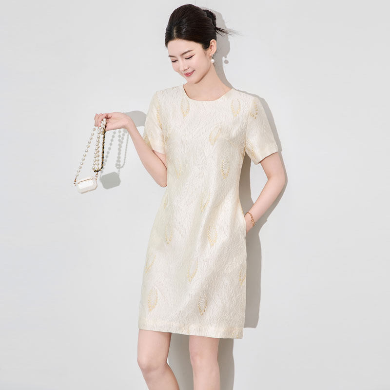 迪奥短袖连衣裙女2026夏季高级感时尚优雅浮雕提花鎏金A字中长裙