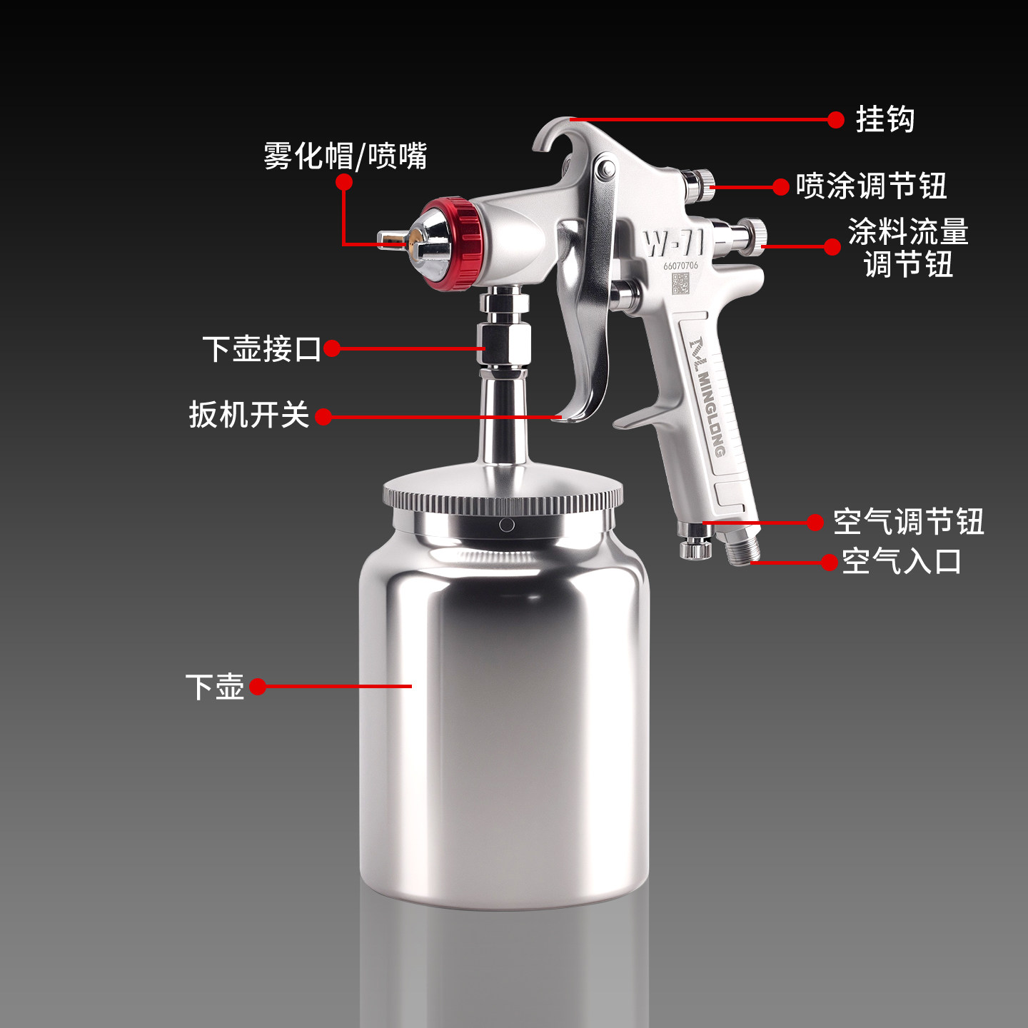 明龙气动喷漆枪高端工业级高雾化大面积家具汽车墙面乳胶漆喷枪
