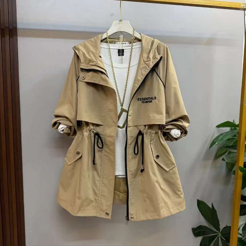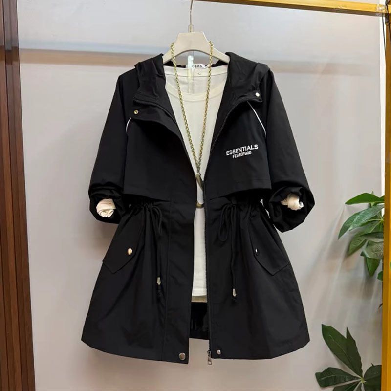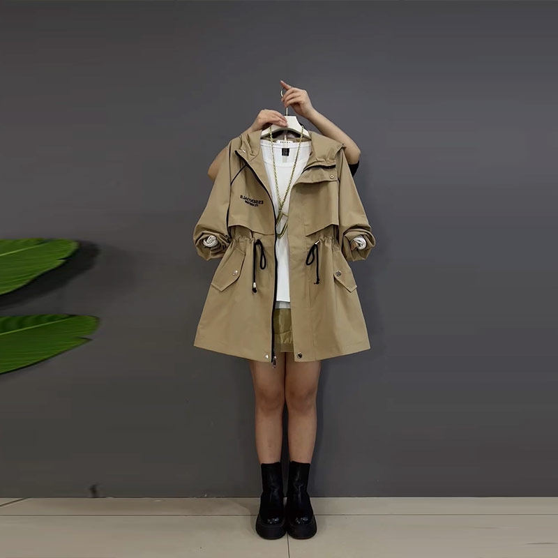 加肥连帽长袖收腰风衣外套胖妹妹中长款2026早春新款时尚通勤上衣