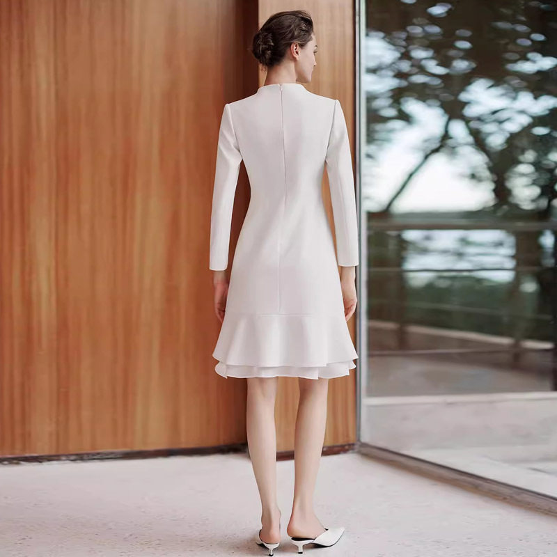 26春新款米白色收腰西装连衣裙V领长袖职场通勤风修身型重要场合