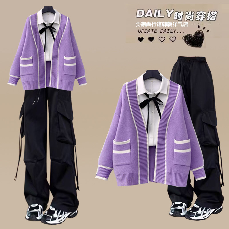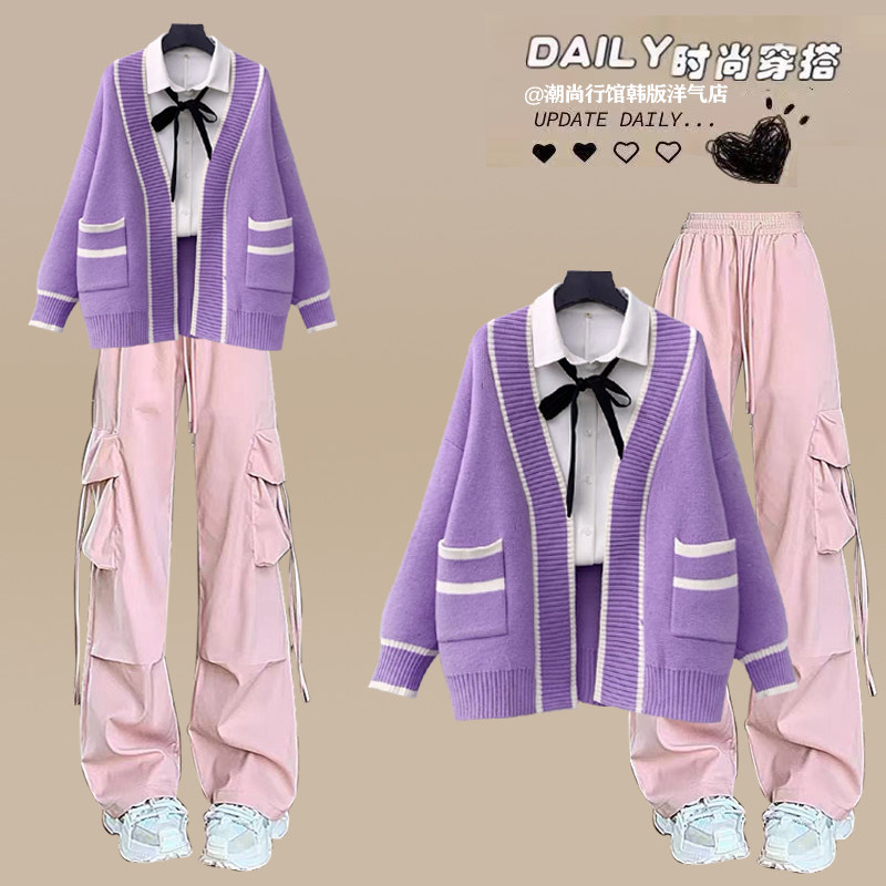 14岁初中生时尚女孩毛衣秋冬套装15高中学生秋装13青少年两件套12