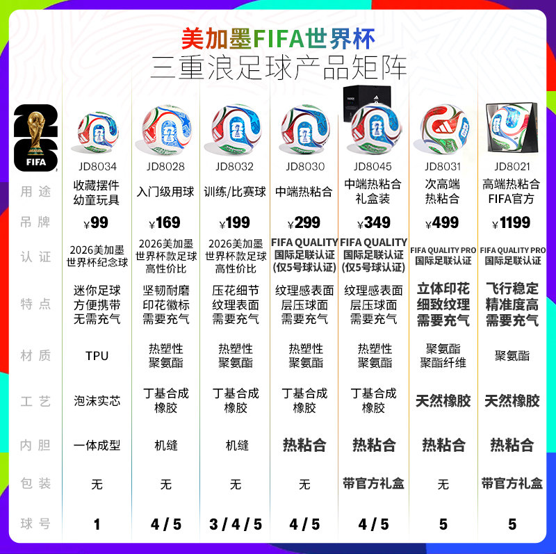 311线报网描述:Adidas 2026世界杯5号球三重浪美加墨