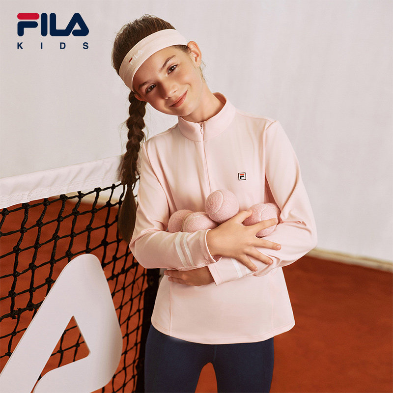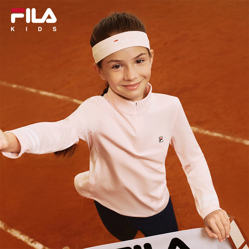 FILA斐乐儿童长袖T恤夏季新款女童中大童网球运动立领上衣防晒