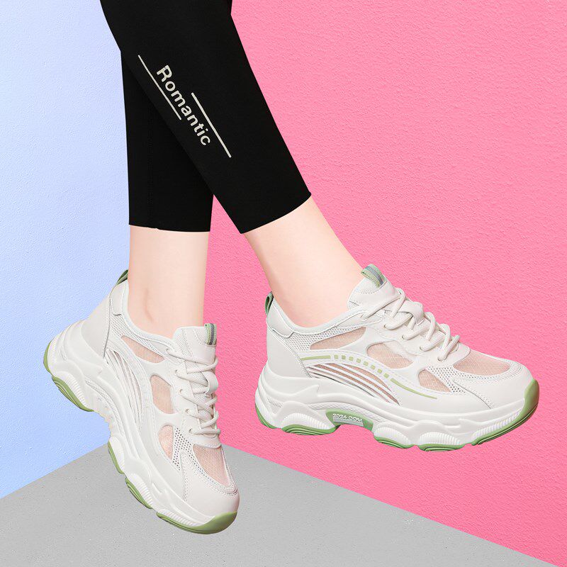 白色老爹鞋女款2024新款夏季薄款透气小白鞋网面休闲鞋妈妈运动鞋