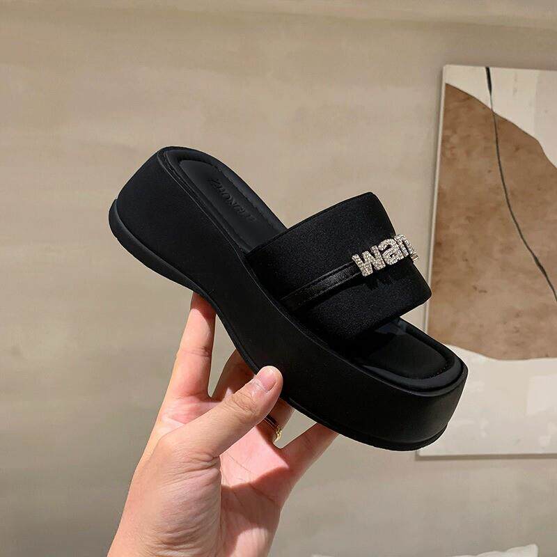 好货拖鞋女外穿2026新款夏天高跟松糕增高夏季凉鞋厚底女鞋黑色凉