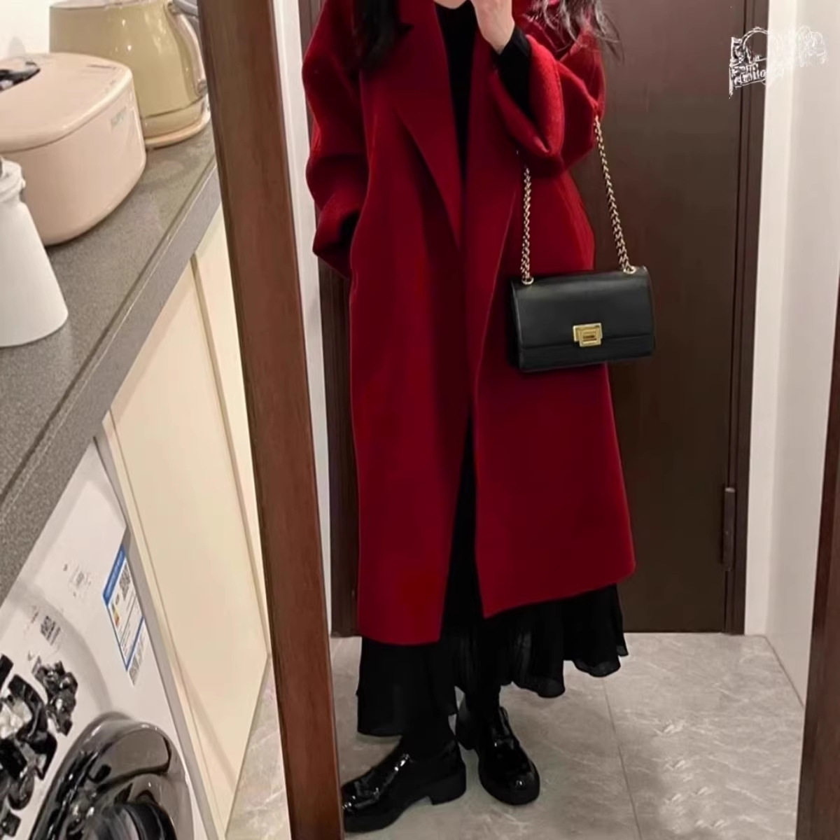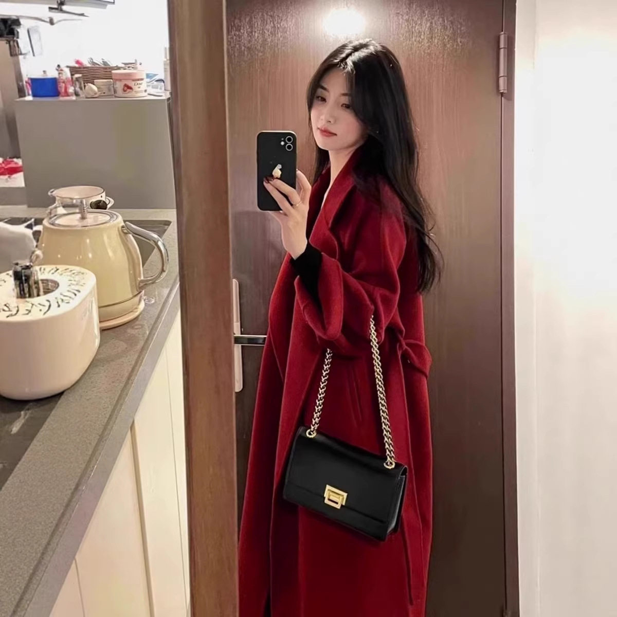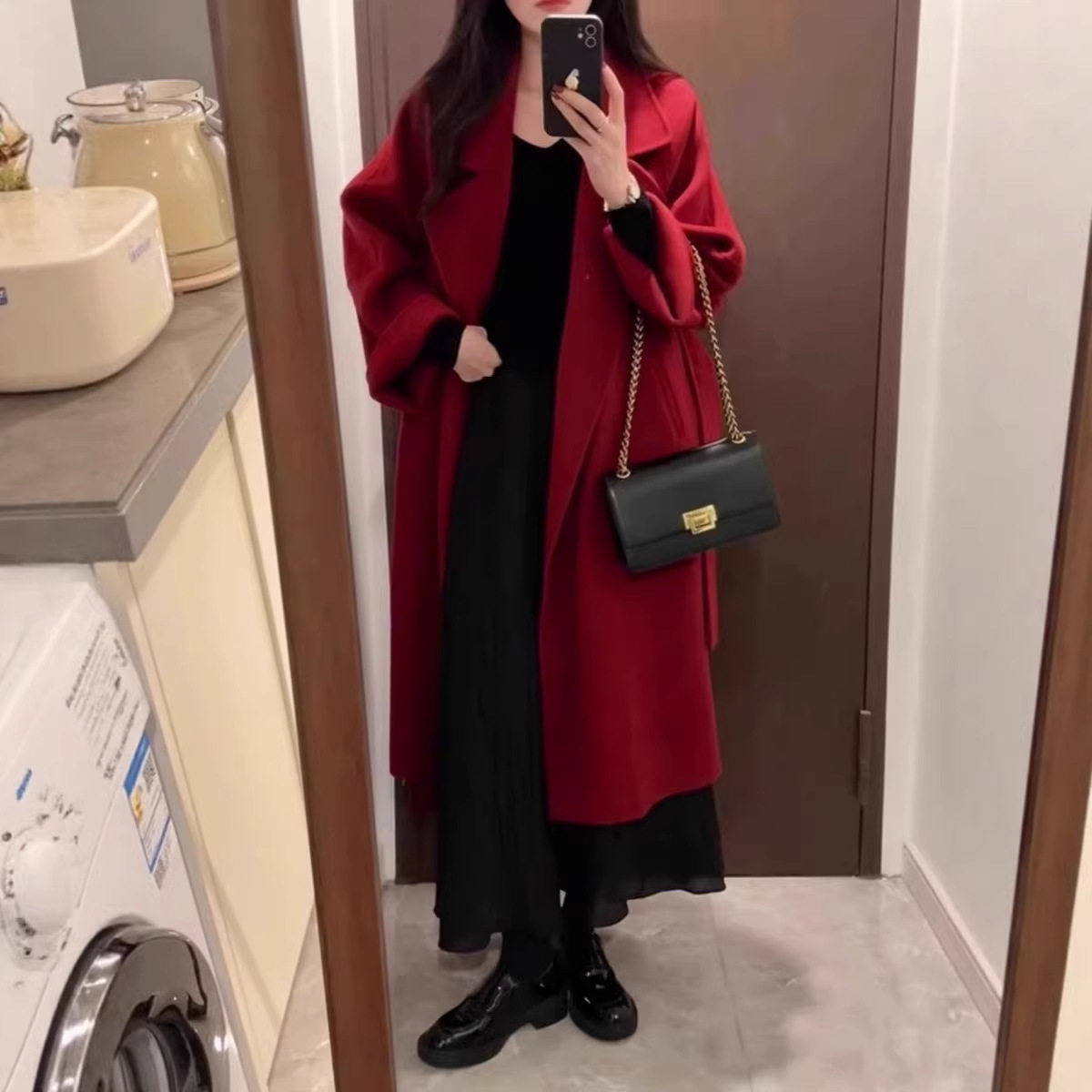 红色新年装双面绒羊毛大衣中长款秋冬慵懒风年轻款宽松羊毛呢外套