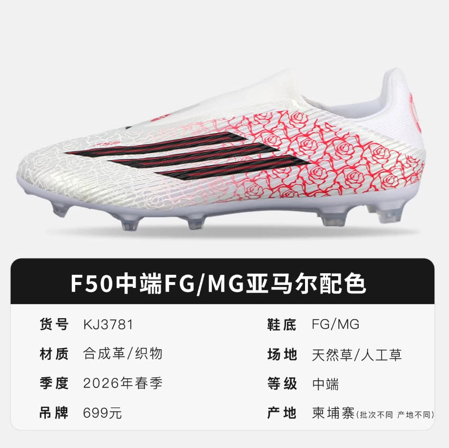 阿迪达斯F50亚马尔中端无鞋带FG/MG混钉比赛训练男女足球鞋KJ3781