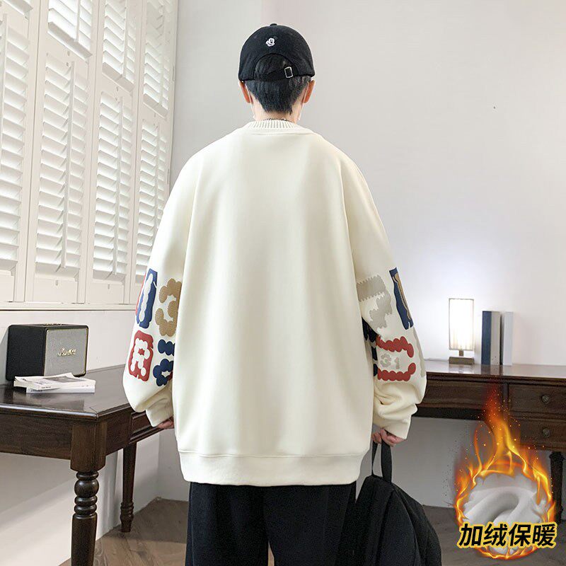 潮牌半高领卫衣男生秋冬季青少年潮流帅气加绒保暖长袖t恤上衣服